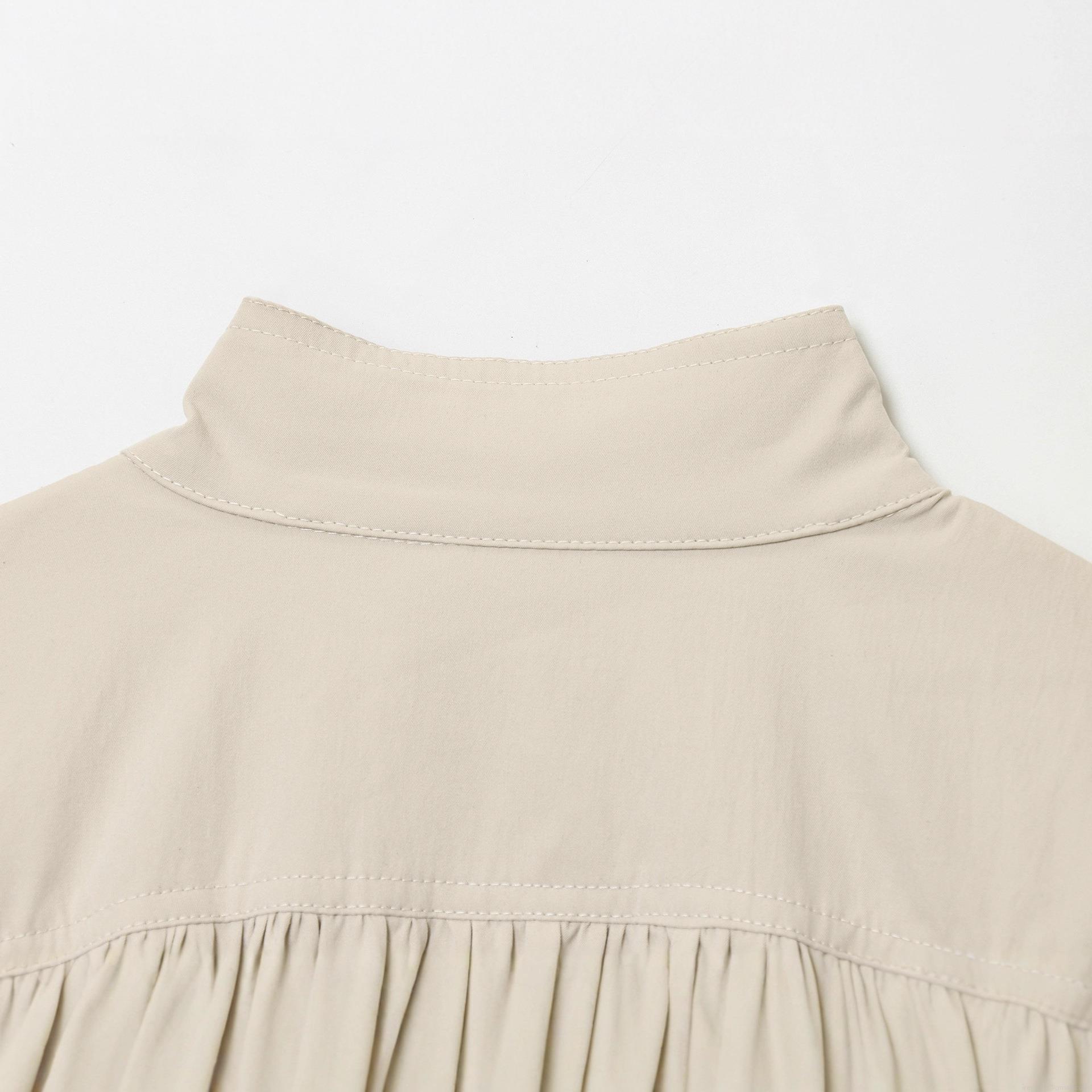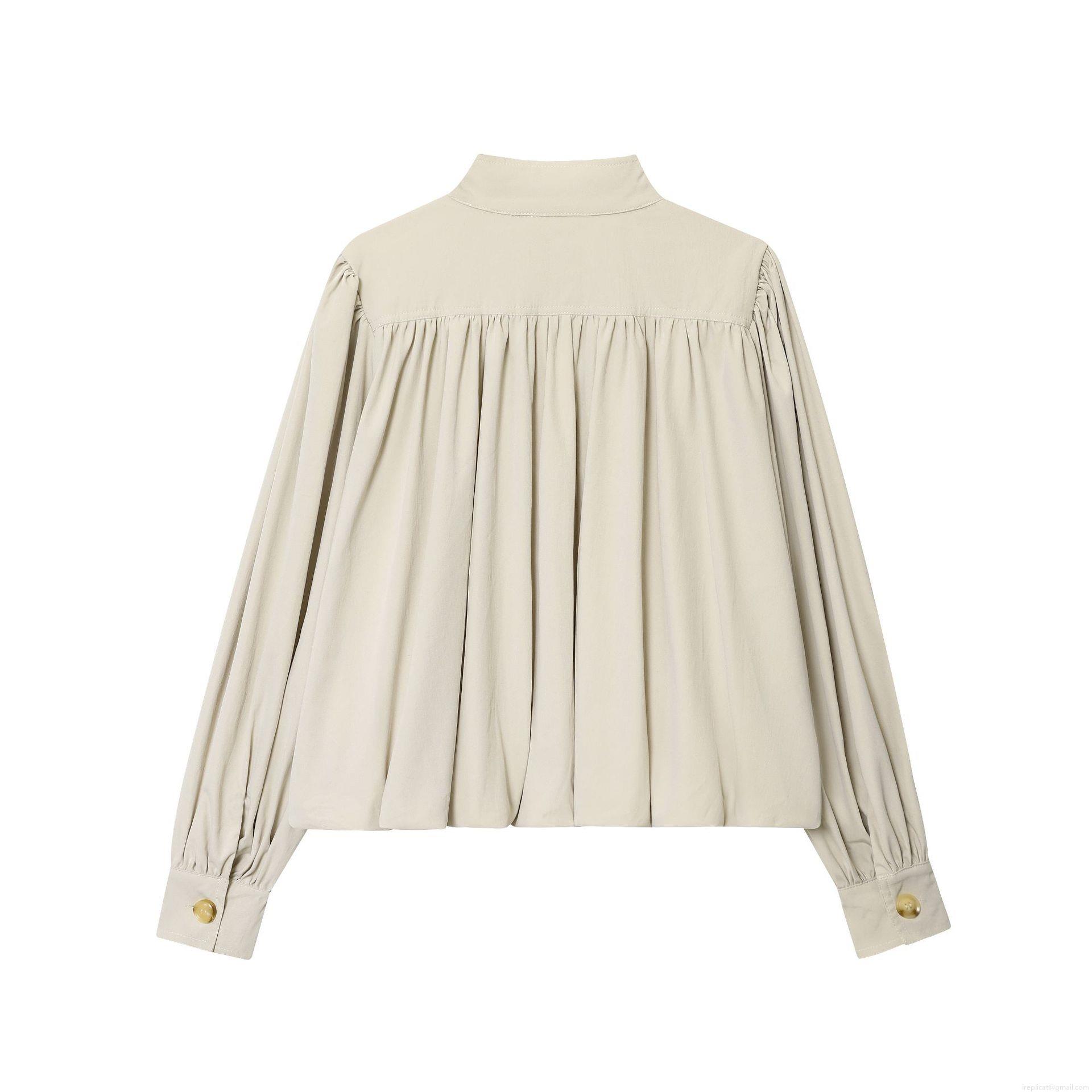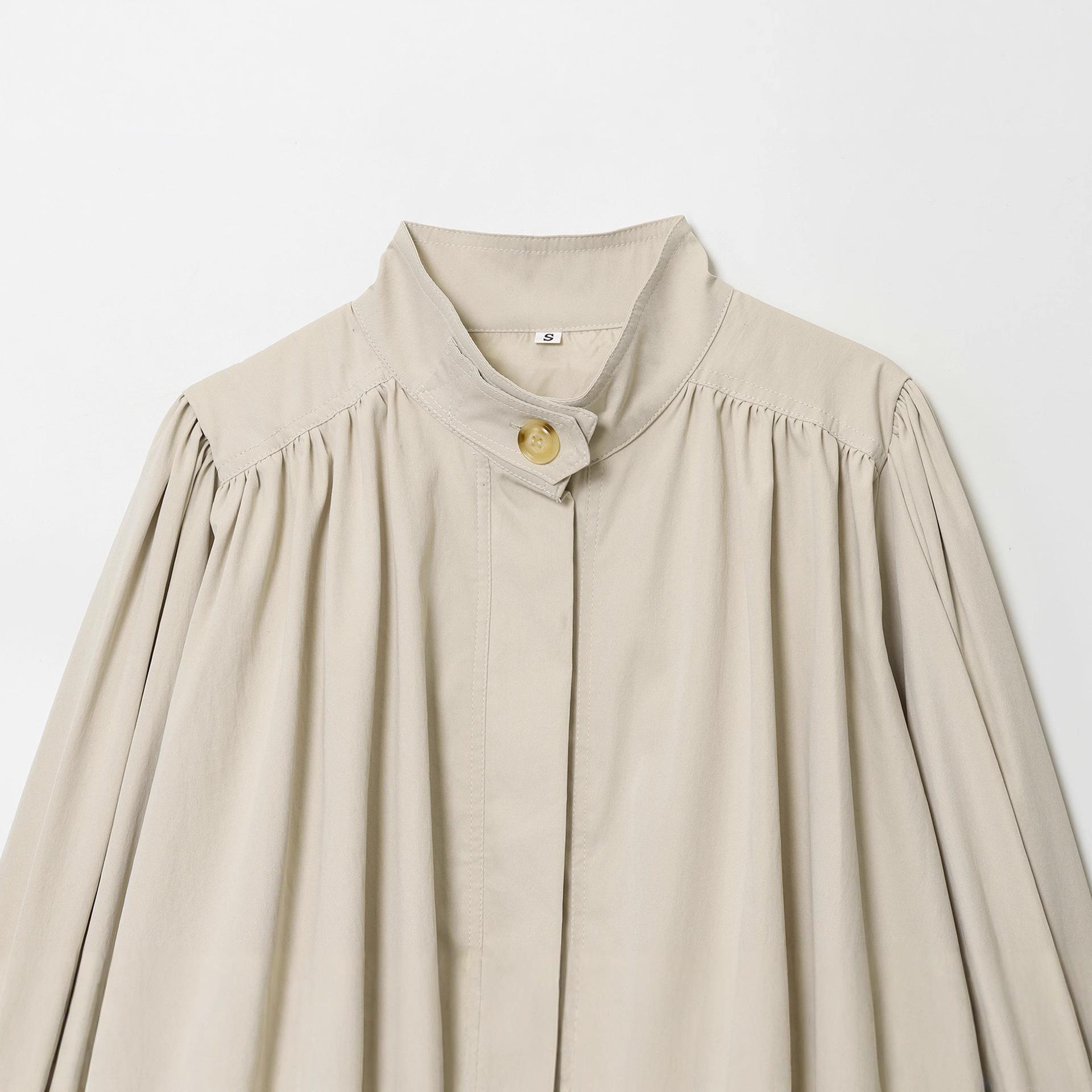 Solid Color, Snap Fastener, Small Stand-up Collar, Pleated Decoration