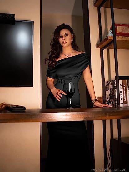 Women's Plus Size Black One Shoulder Evening Gown Elegant Slim Fit Fishtail Maxi Party Dress Formal Occasion Prom Dresses