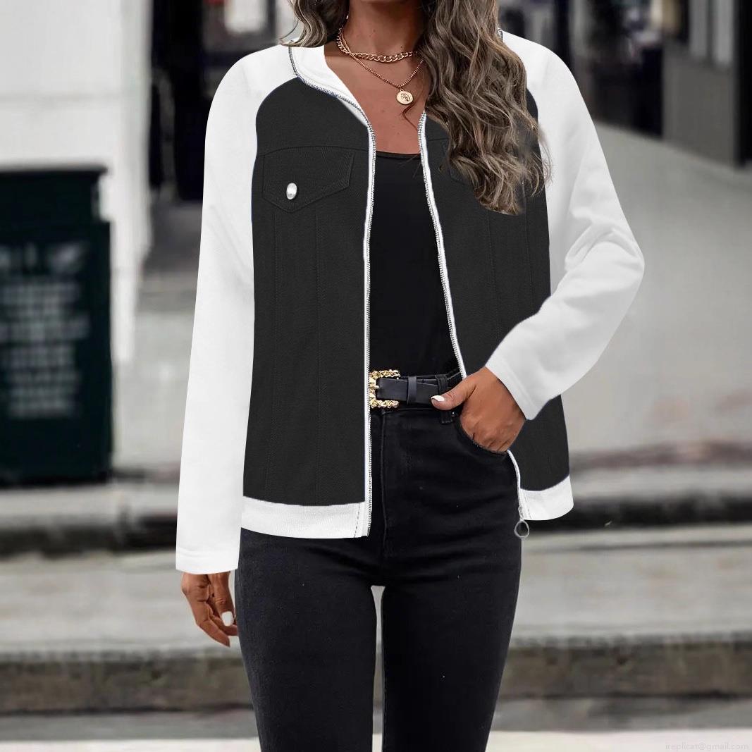 Women's Solid Color Zipper Jacket Fashion Lapel Long Sleeve Short...