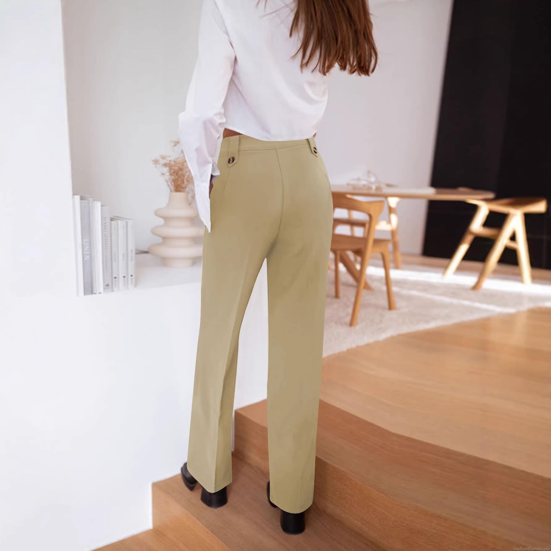 Women's Plus Size High Waisted Straight Leg Suit Pants Solid Color Button Decoration Drape Wide Leg Trousers for Work Office Elegant Casual Wear