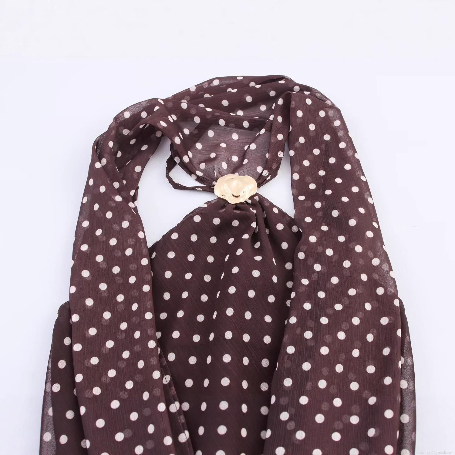 Women's Polka Dot Halter Neck T-Shirt Sleeveless Chiffon Backless Top With Metal Heart Buckle European Street Style Casual Blouse For Daily Party