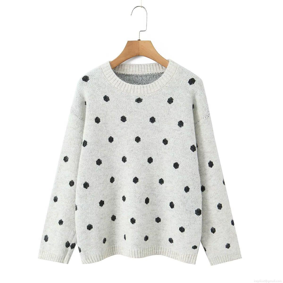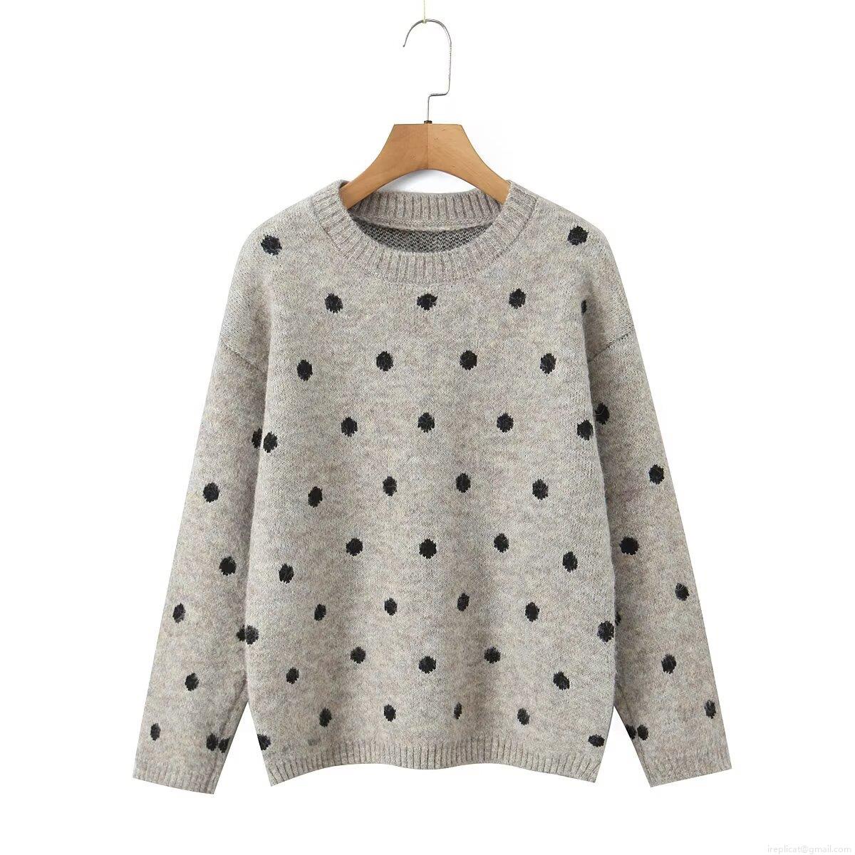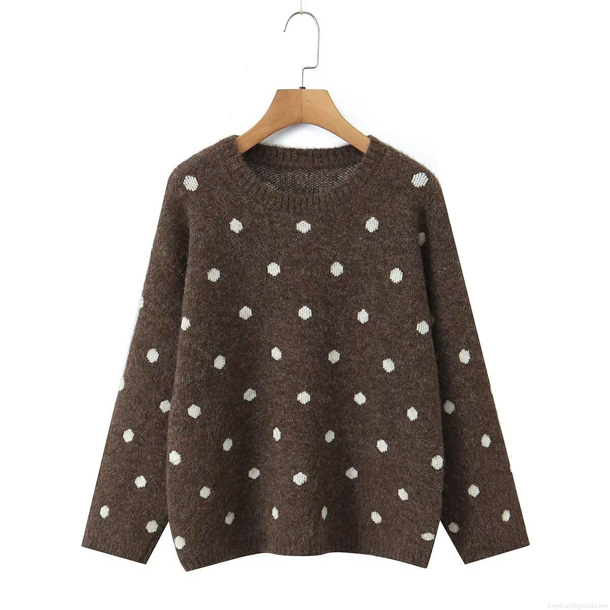 Women's Polka Dot Knit Sweater Round Neck Long Sleeve Loose Pullover Casual Streetwear Fall Winter Jumper Tops For Ladies