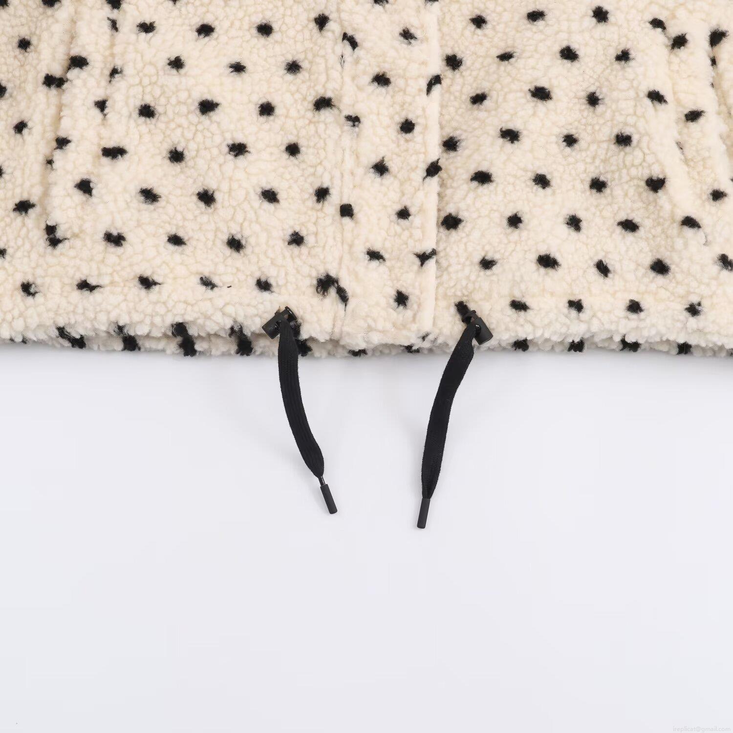 Women's Polka Dot Polyester Fleece Jacket Short Stand Collar Long Sleeve Streetwear Casual Loose Warm Coat For Winter Daily Outwear