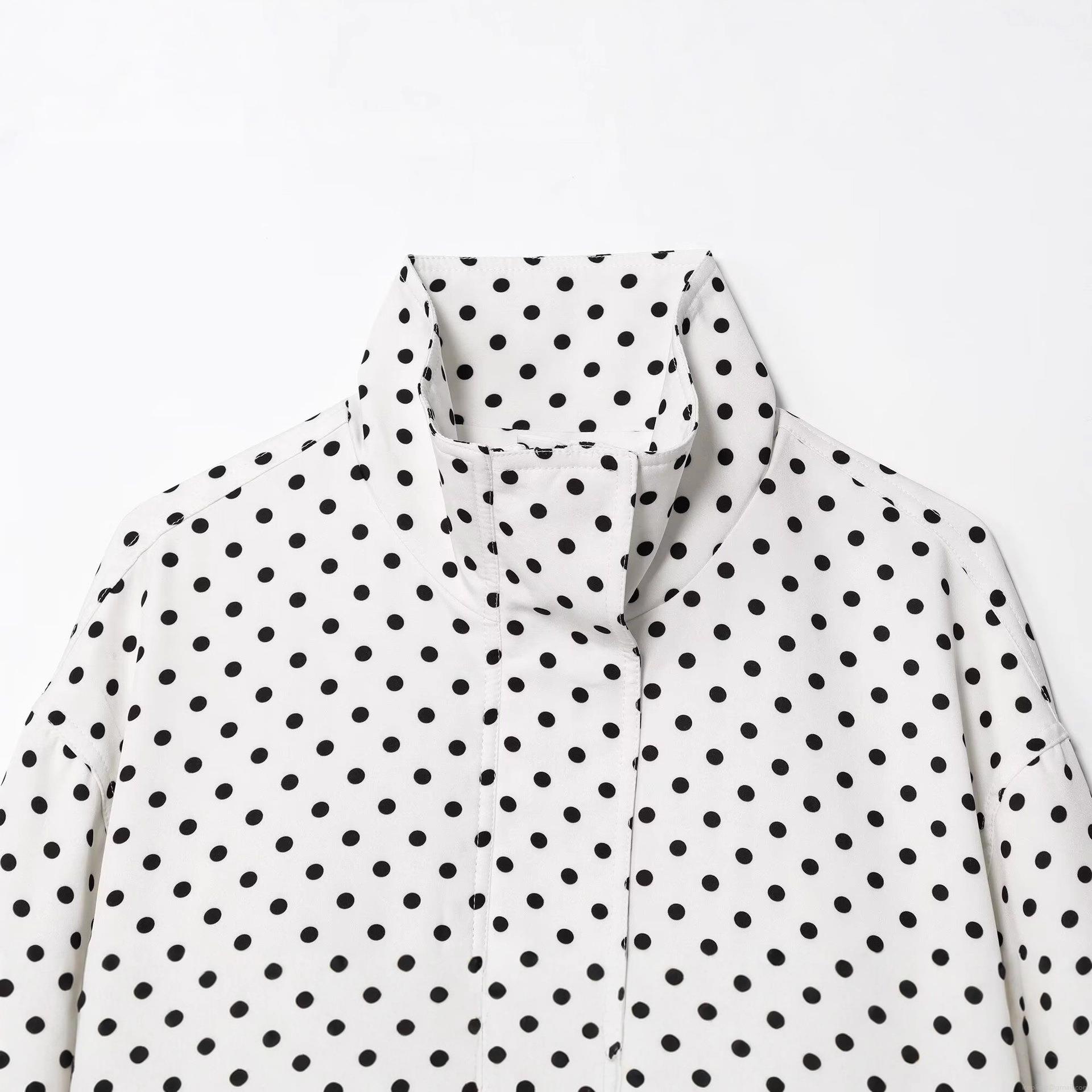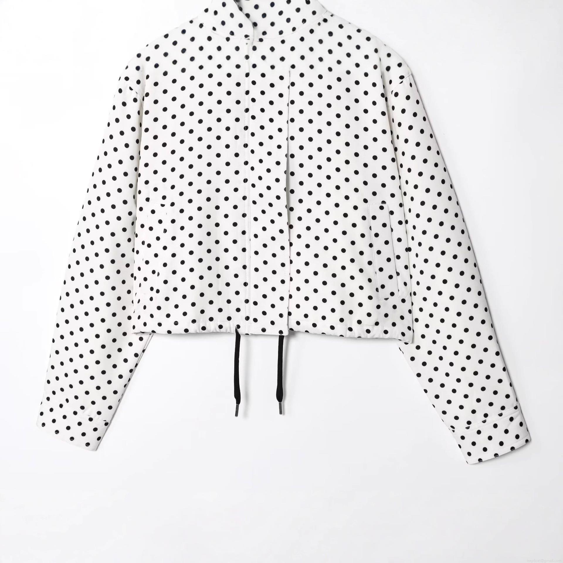 Women's Polka Dot Stand Collar Jacket Long Sleeve Zipper Bomber Outerwear With Drawstring Hem Polyester Autumn Streetwear Casual Short Coat