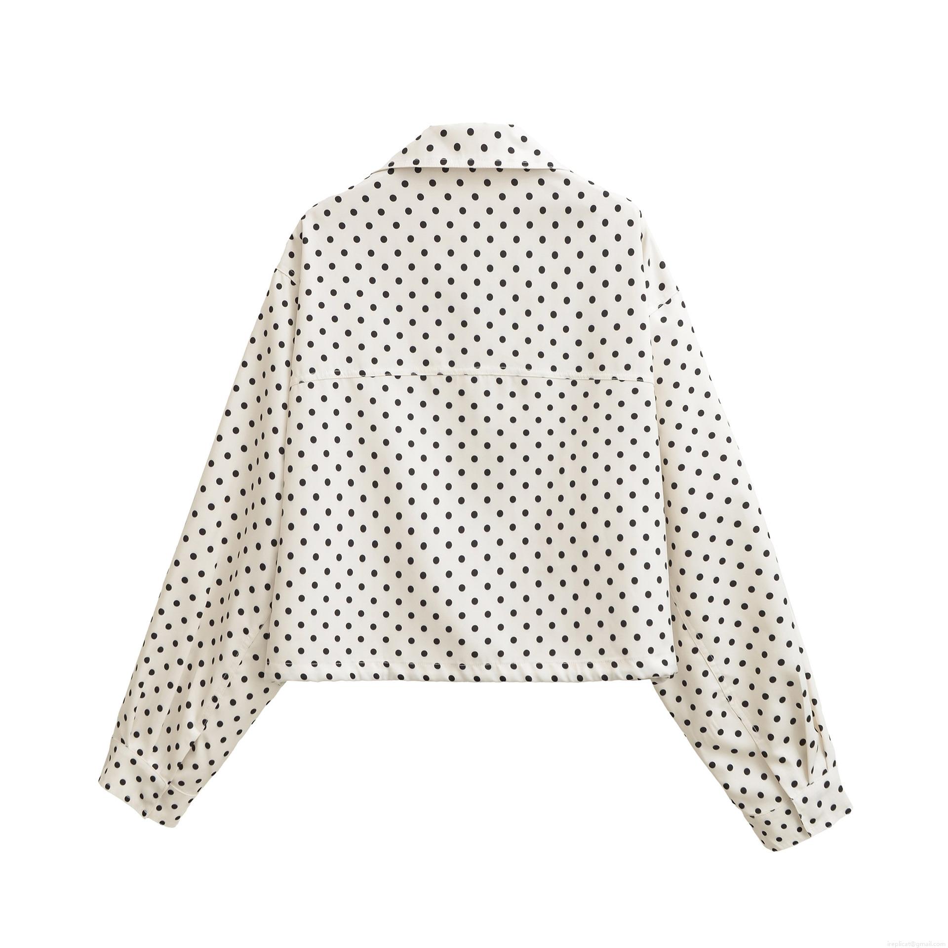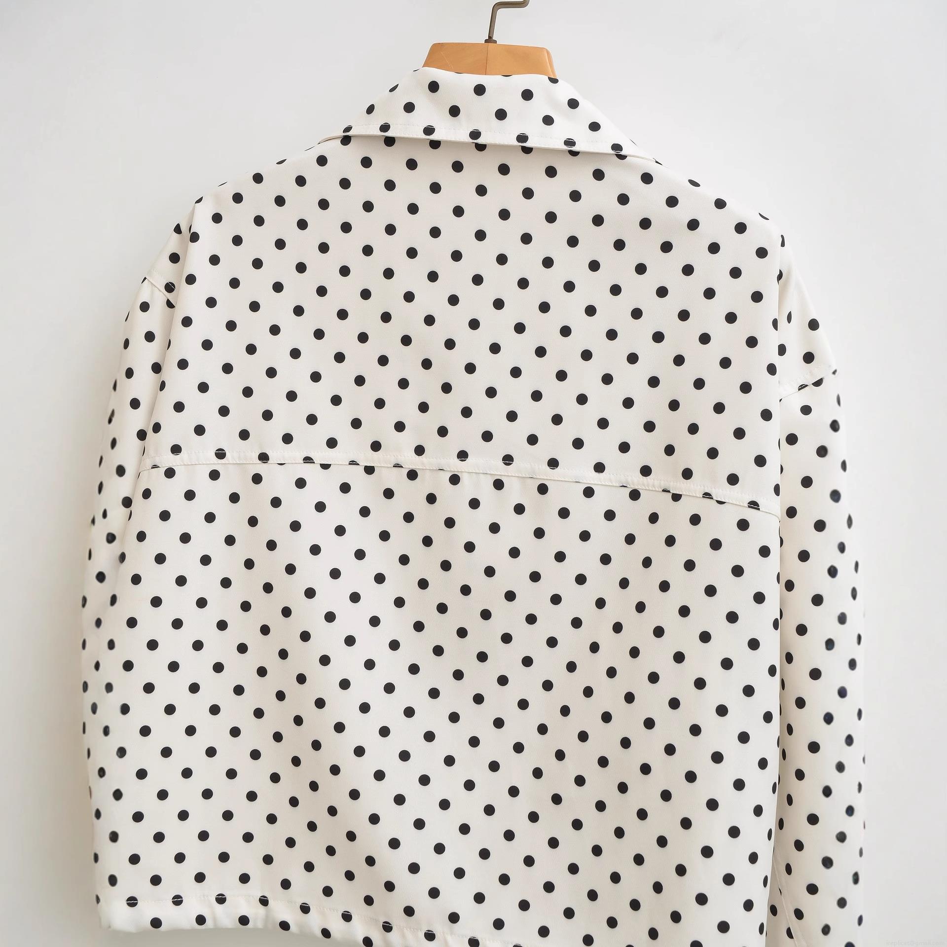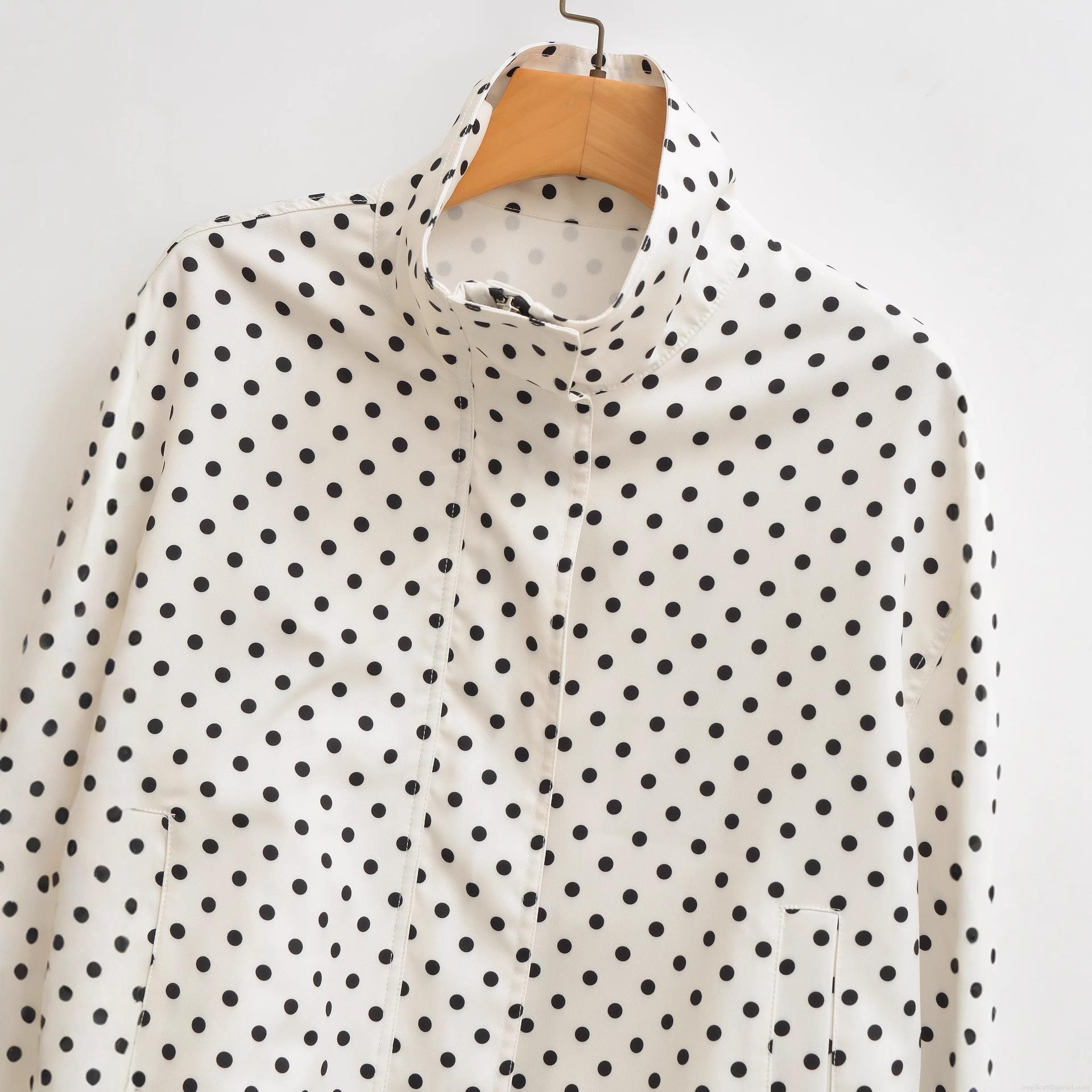 Women's Polka Dot Zip Up Jacket Fashion Stand Collar Cropped Outerwear Polyester Long Sleeve Casual Streetwear Seersucker Coat For Spring Autumn