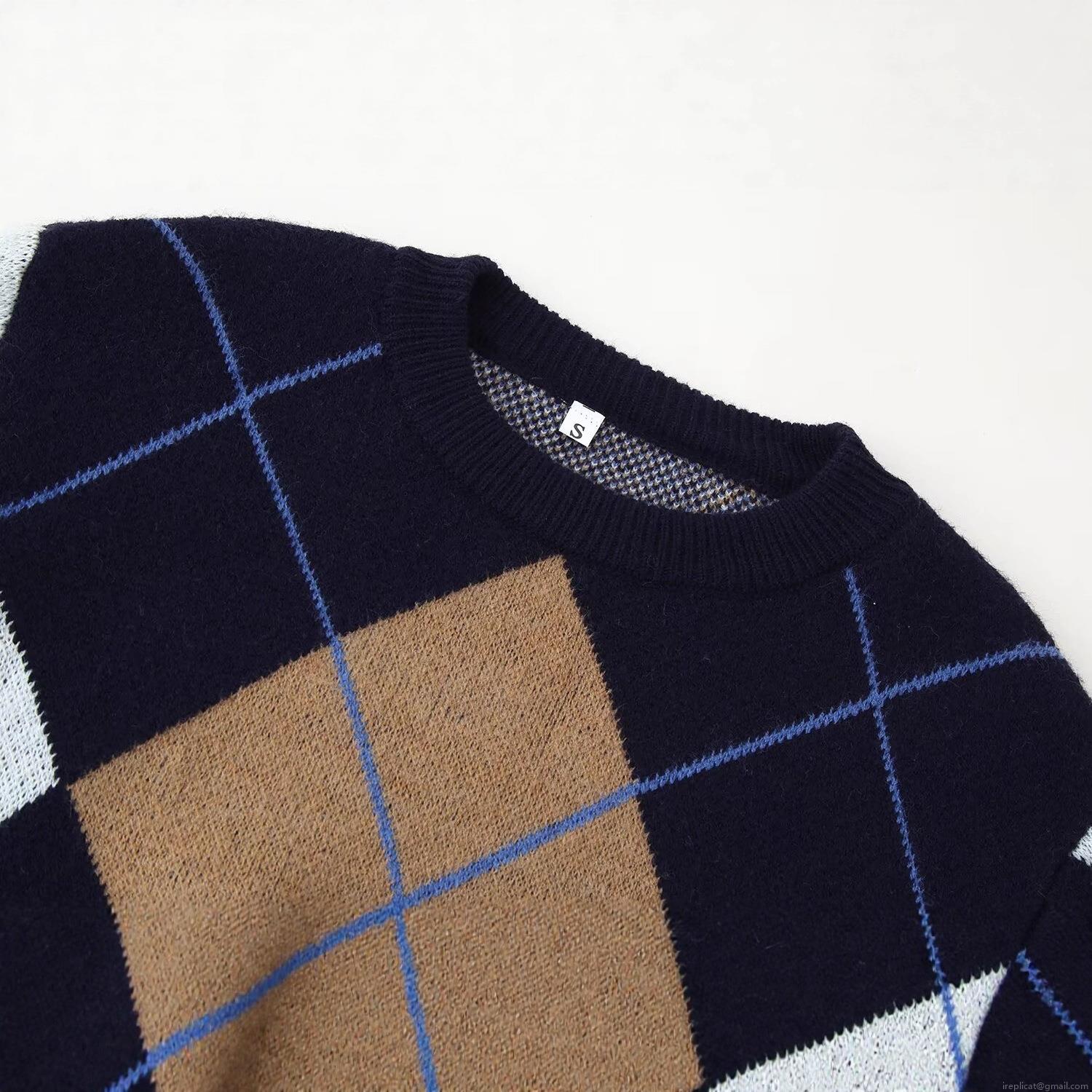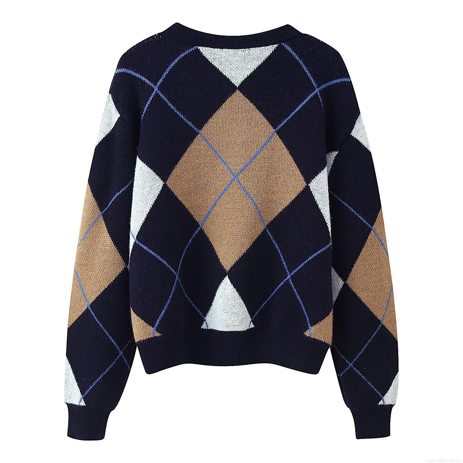 Women's Polyester Argyle Plaid Pattern Round Neck Long Sleeve Pullover Sweater Geometric Color Block Knitwear Casual Streetwear Top Autumn Winter