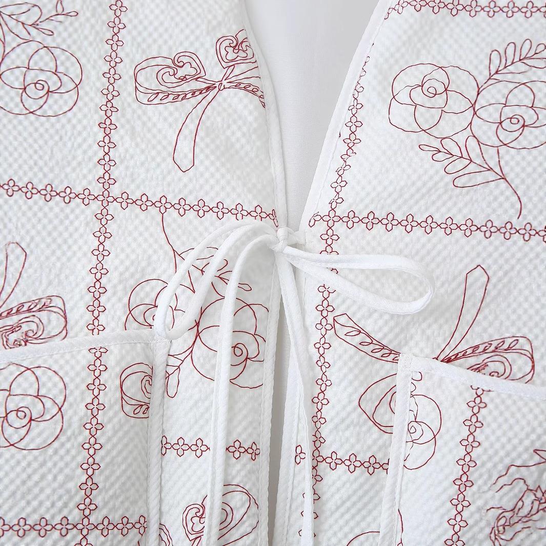 Women's Quilted Cotton-padded Jacket V-Neck Lace-up Rose Bow Floral Print Winter Coat Western Style Streetwear Warm Long Sleeve Outerwear