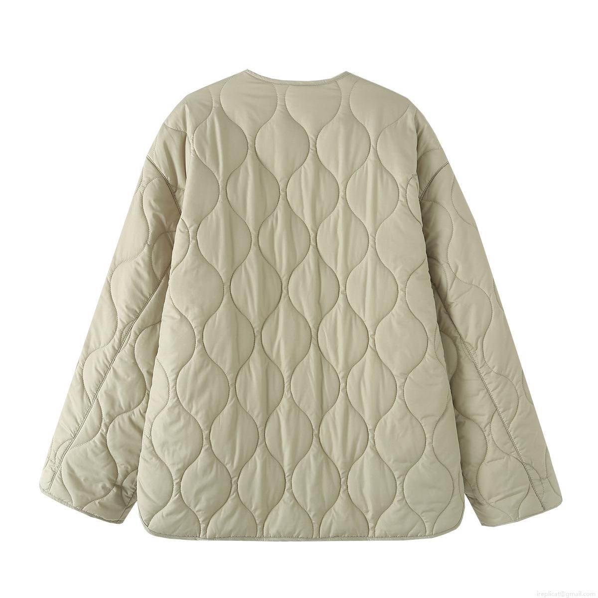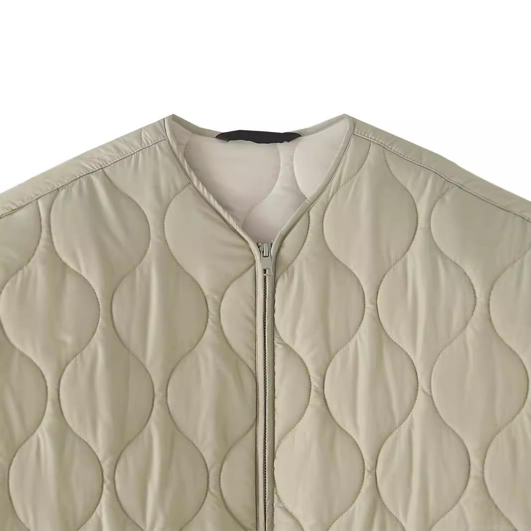 Women's Quilted Jacket Lightweight 100% Polyester Padded Liner Outerwear With Wave Onion Quilting Pattern Zipper Closure Loose Fit Casual Winter Coat For Women Streetwear