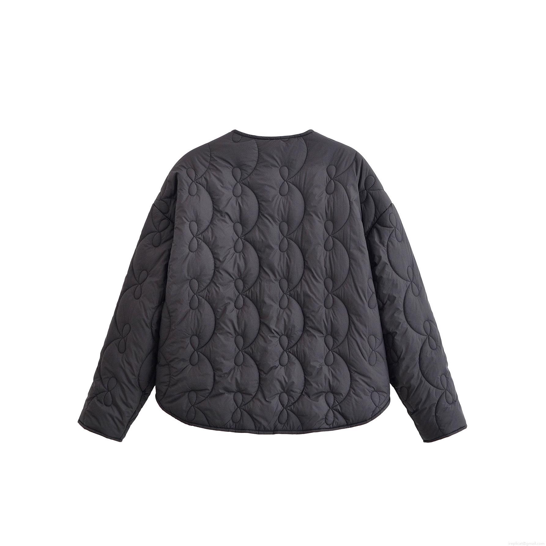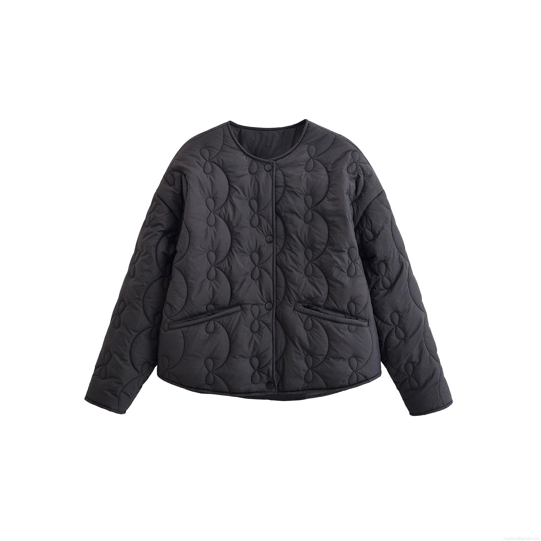 Women's Quilted Jacket Lightweight Cotton Padded Coat Round Neck Wave Gourd Pattern Button Front Outerwear For Autumn Winter Casual Fashion Lady