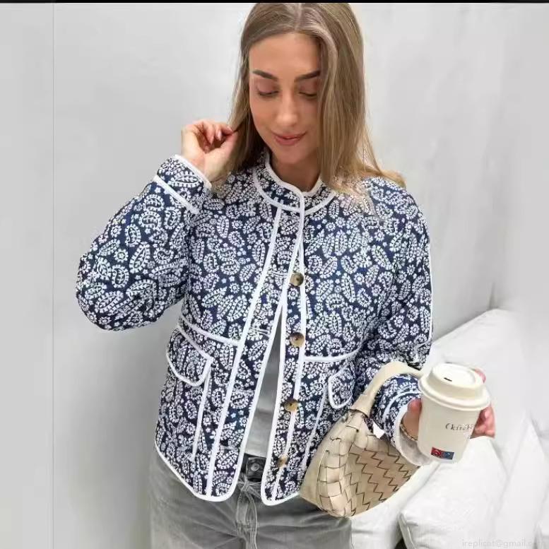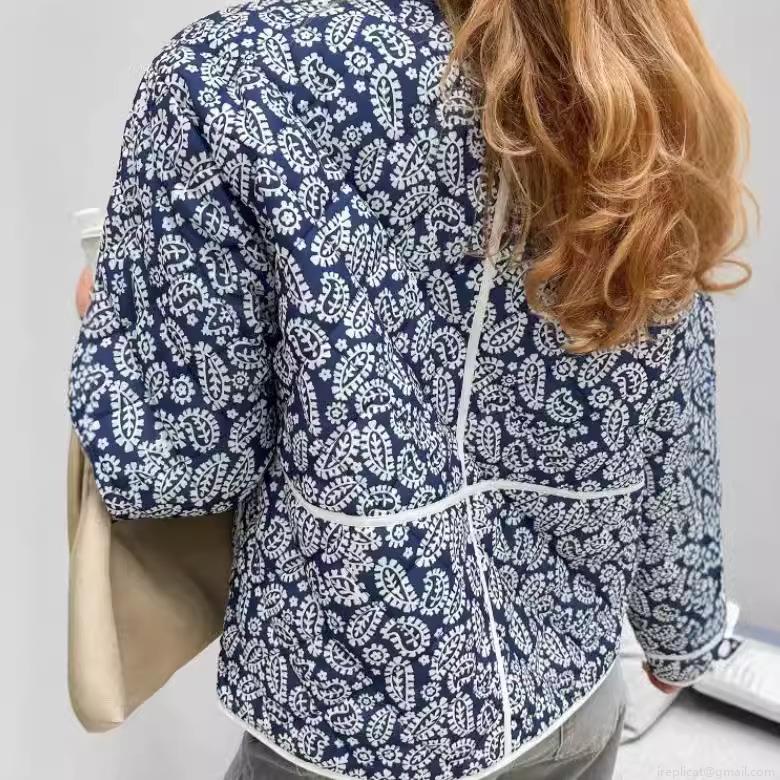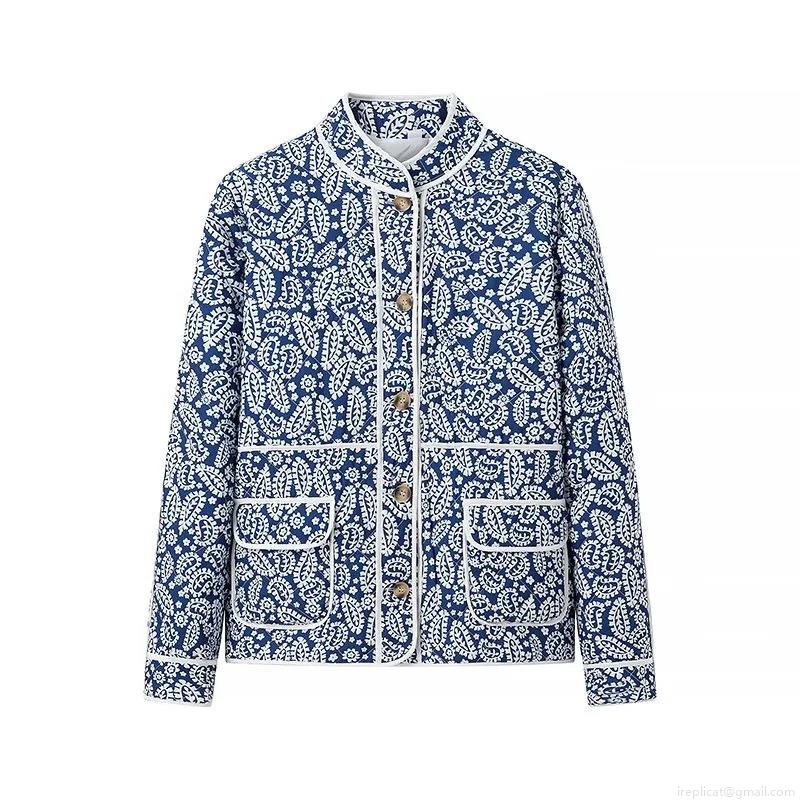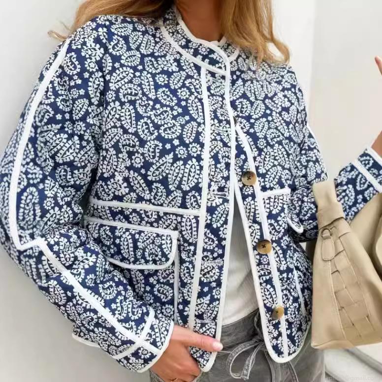 Women's Quilted Paisley Jacket Vintage Floral Print Cotton Padded Short Coat With Buttons Standing Collar For Casual Streetwear Ethnic Style