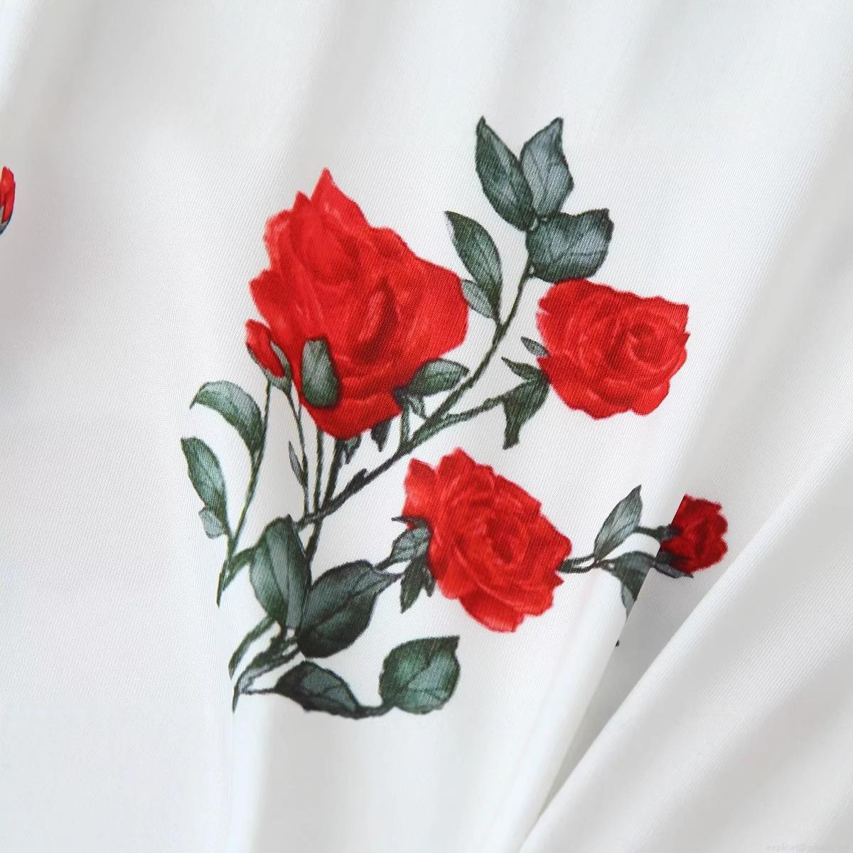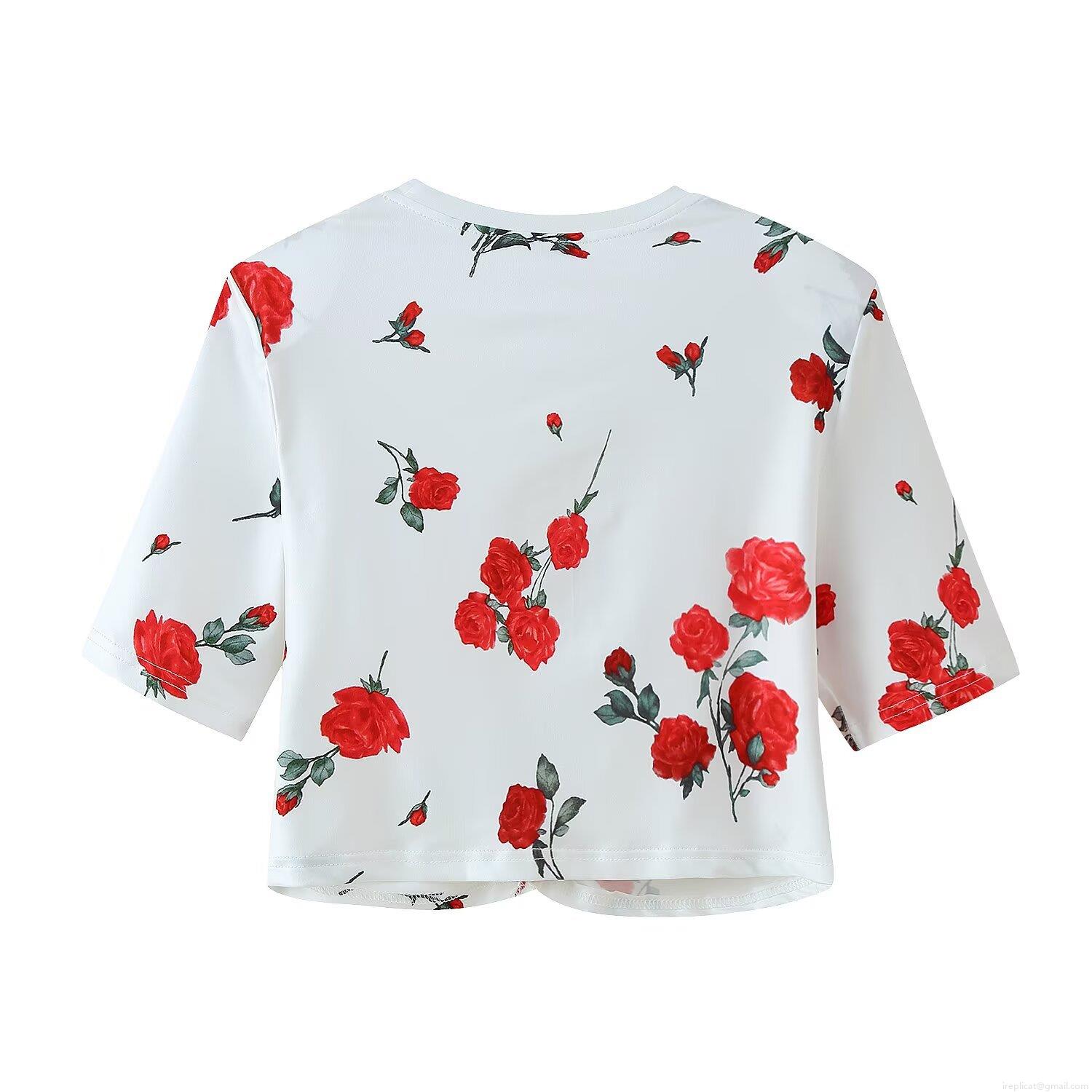 Plants And Flowers, Printing, Red Roses, Navel Exposed, Hem Knot