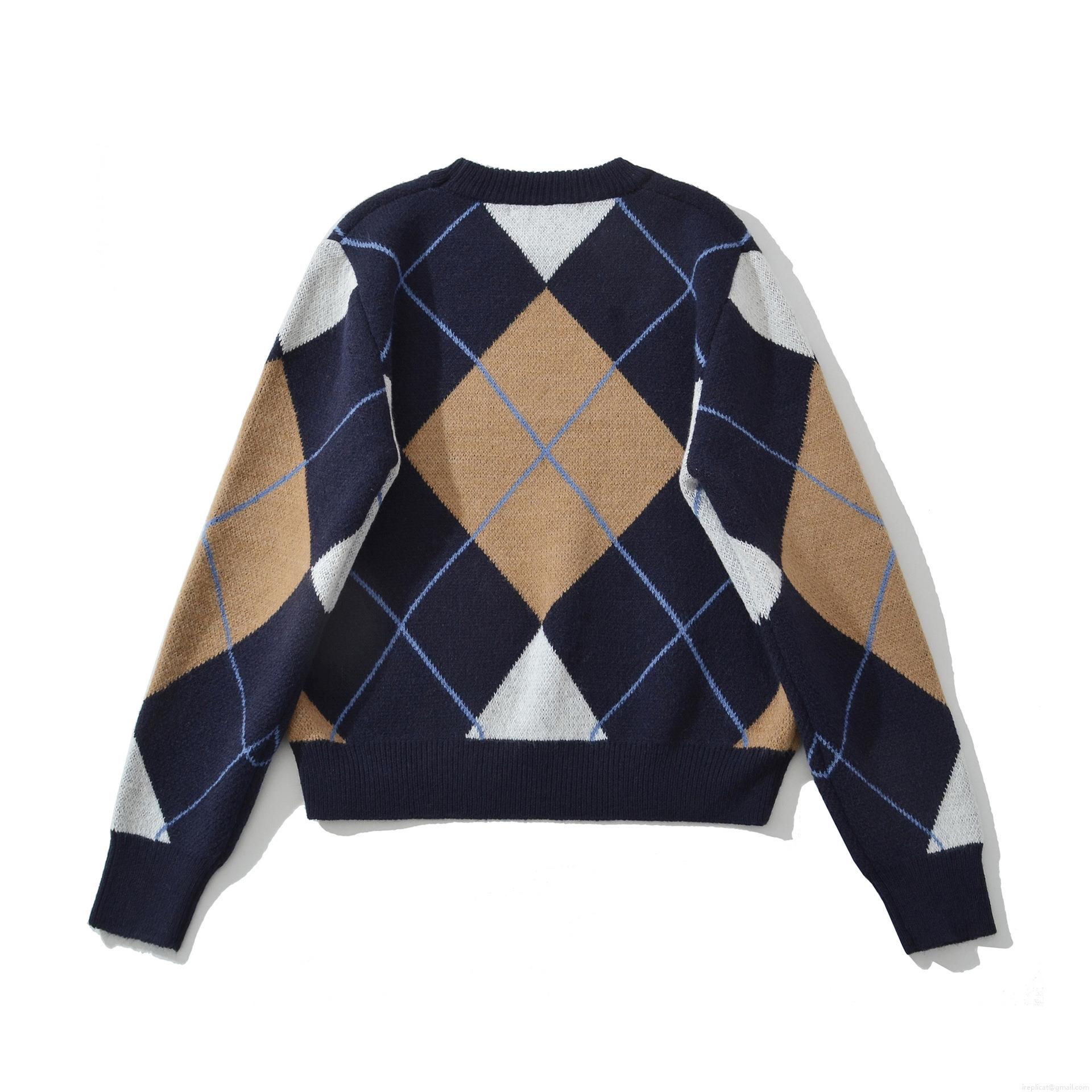 Women's Checkerboard Knitted Sweater Loose Round Neck Long Sleeve...