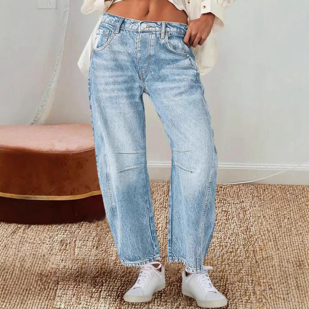Women's Retro Baggy Wide Leg Jeans Cotton Blend Washed Denim Curved Banana Trousers High Waist Straight Leg Pants Casual Streetwear