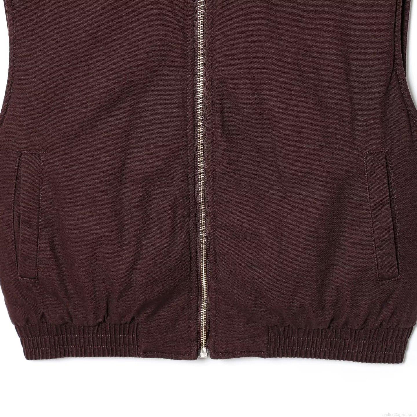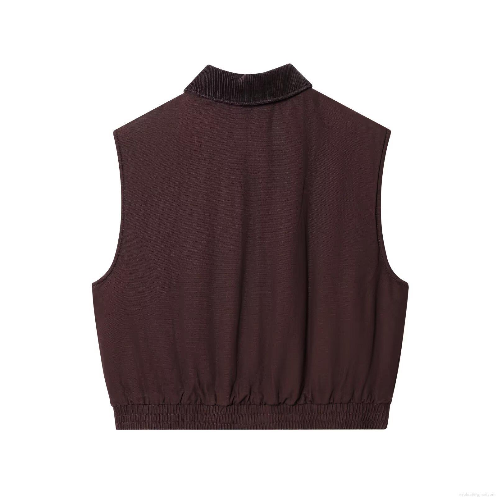 Women's Retro Corduroy Collar Canvas Vest Sleeveless Zip Up Jacket Loose Fit Casual Fall Waistcoat Outerwear With Elastic Hem
