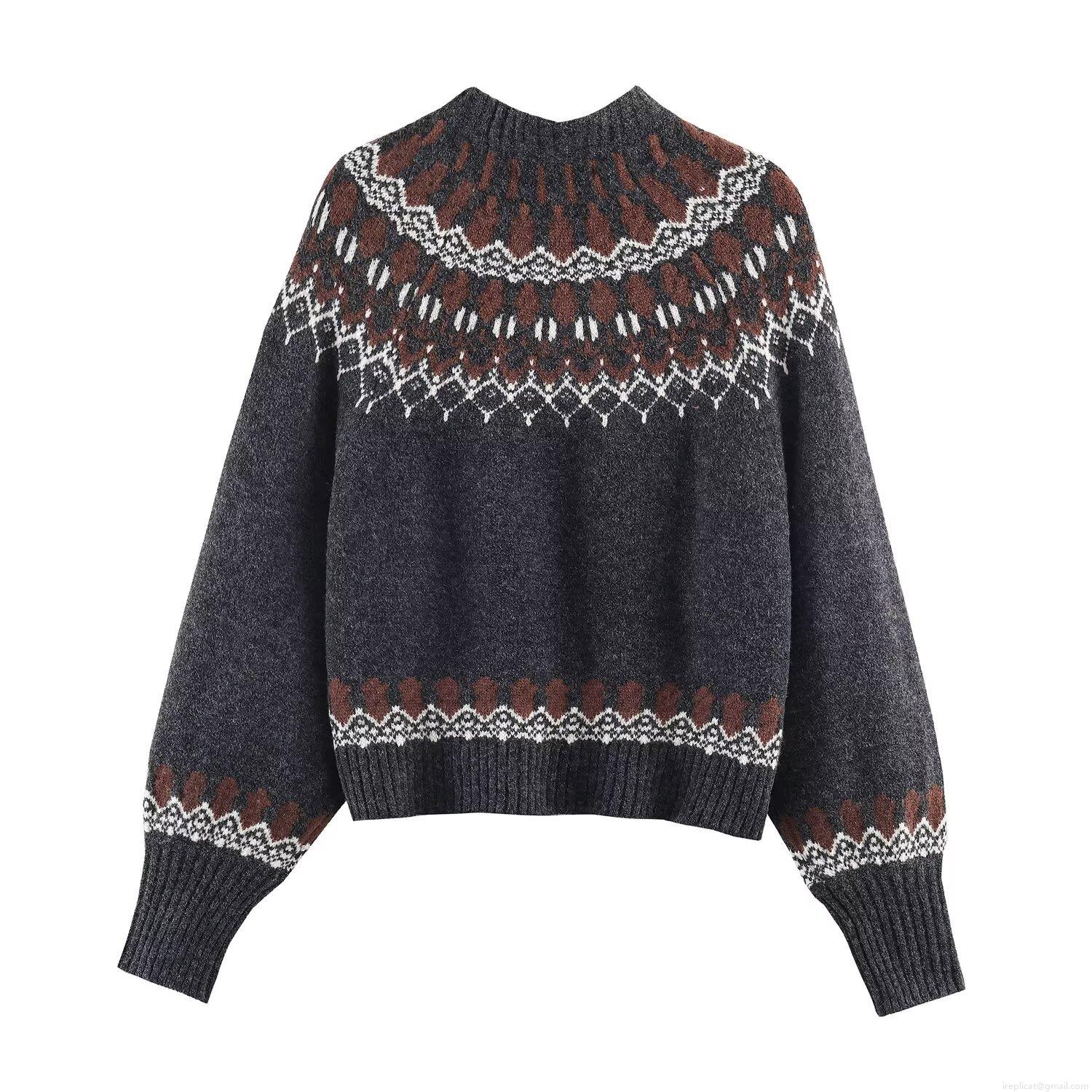 Women's Retro Fair Isle Geometric Knit Sweater Polyester Acrylic Blend Long Sleeve Crew Neck Pullover Tops For Autumn Winter Casual Streetwear