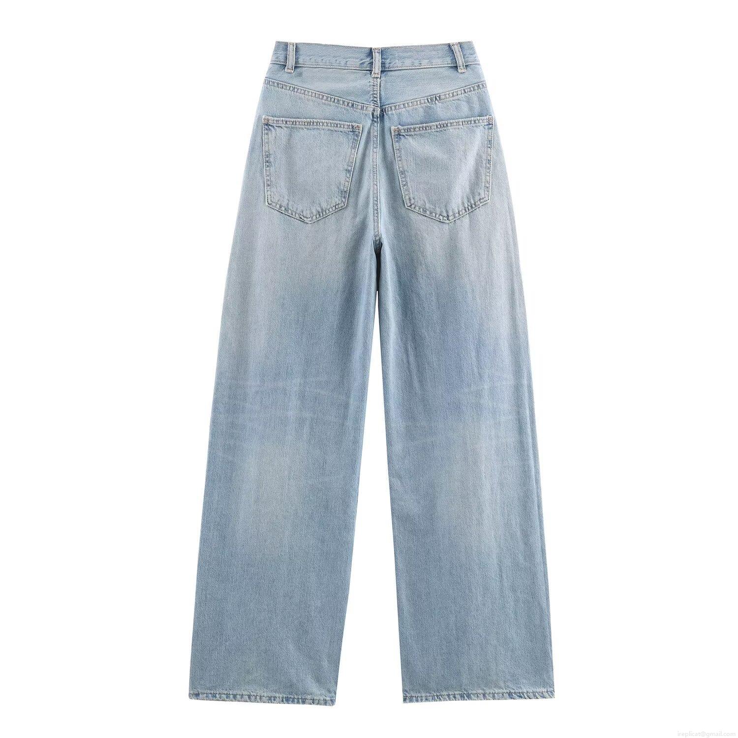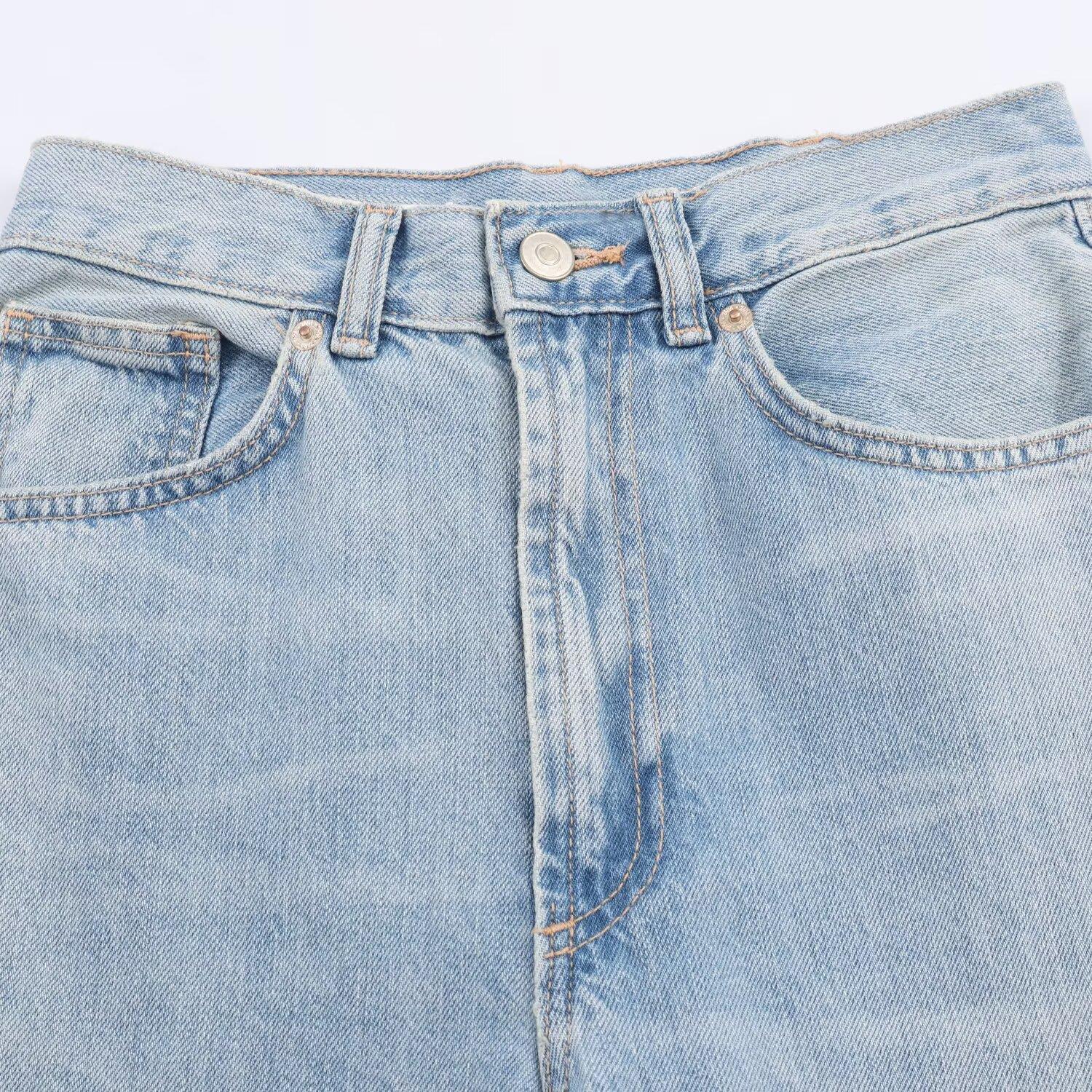 Solid Color, High-waisted, Retro Wash, Water Washing And Whitening, Wide Legs, Cat Whiskering Craftsmanship