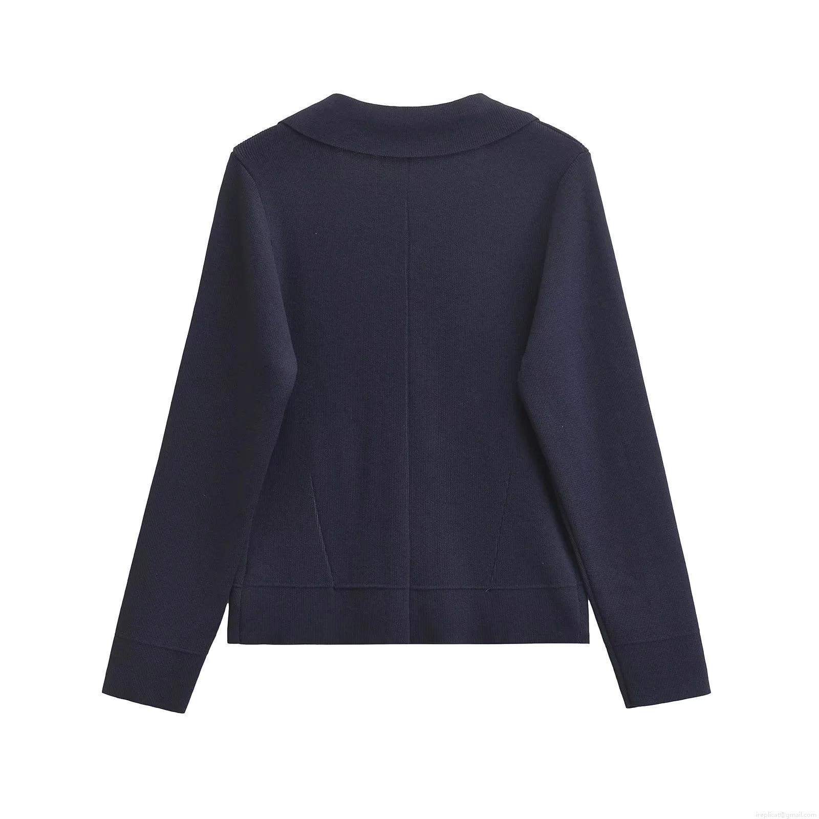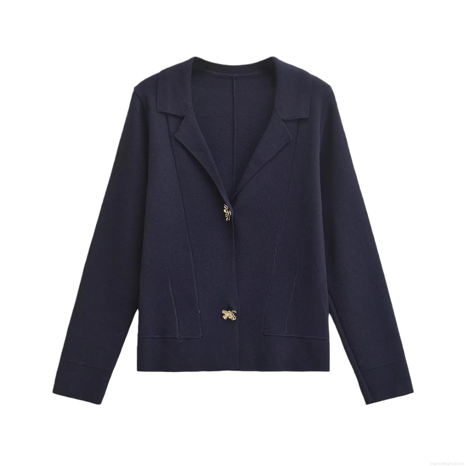 Solid Color, Lapel, Knitted Texture, Metal Decorative Buttons