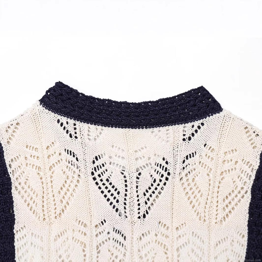Hollow Out, Color Blocking, Heart Hollow, Contrasting Edging, Gold Buttons