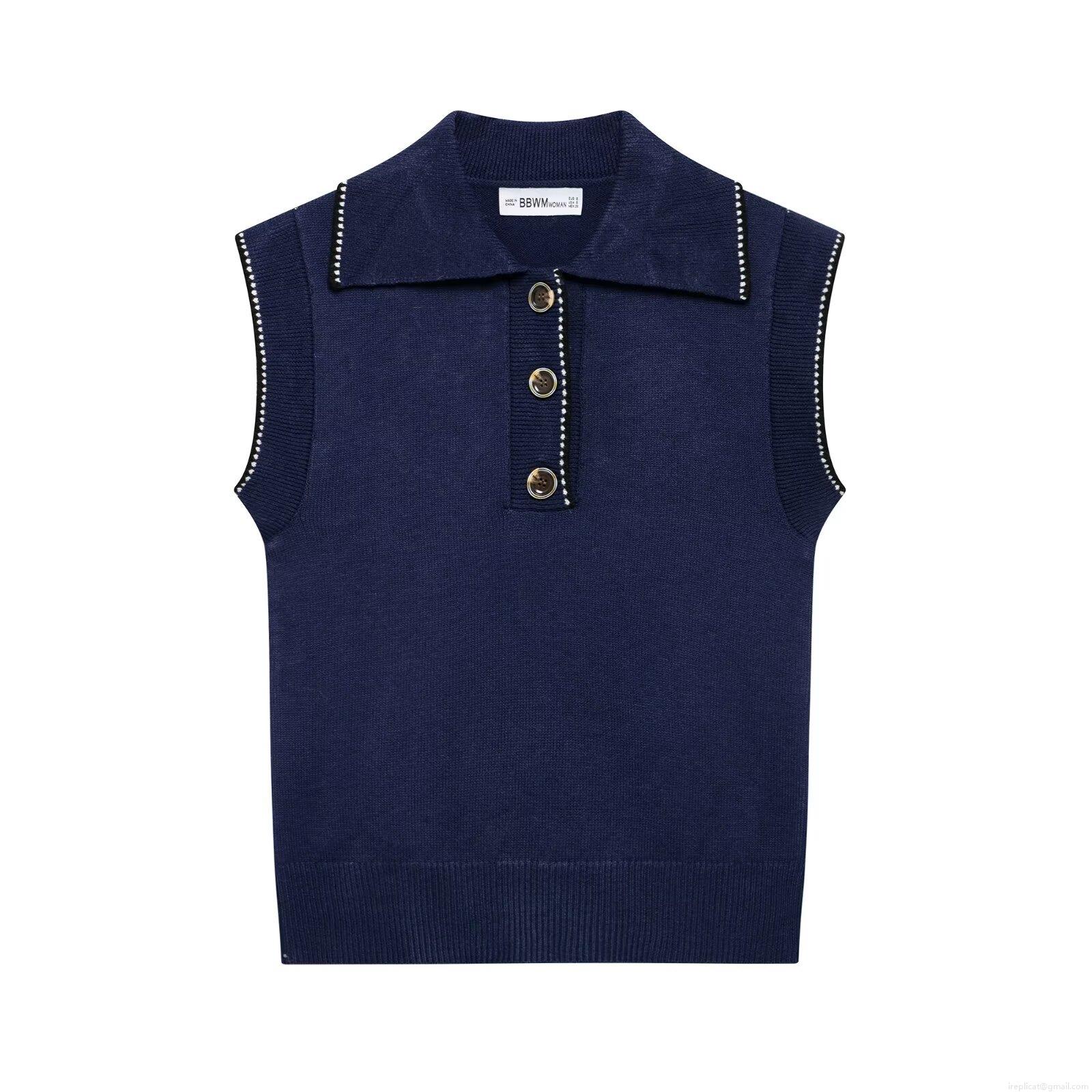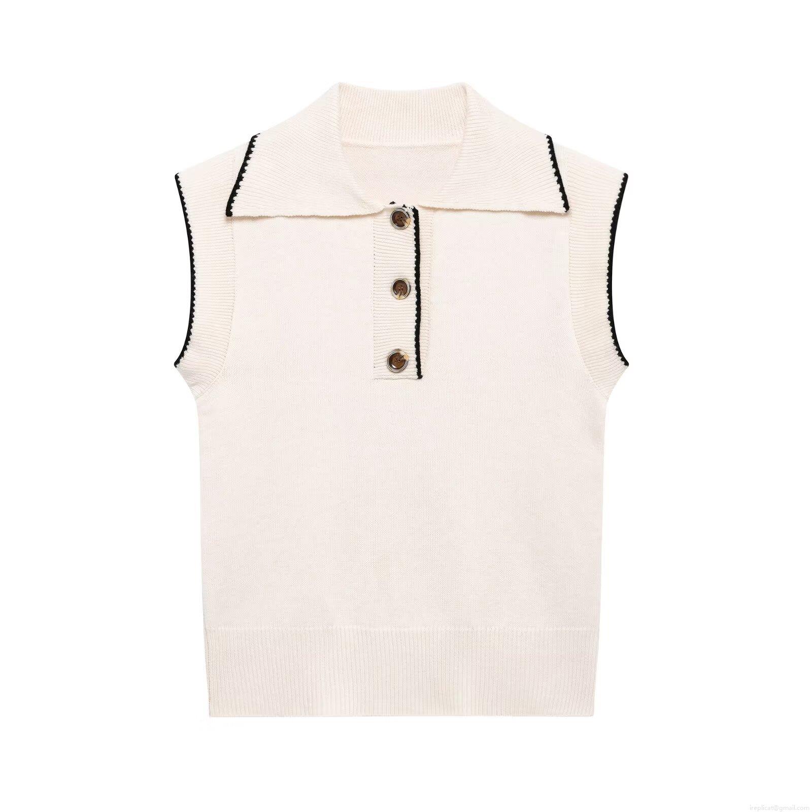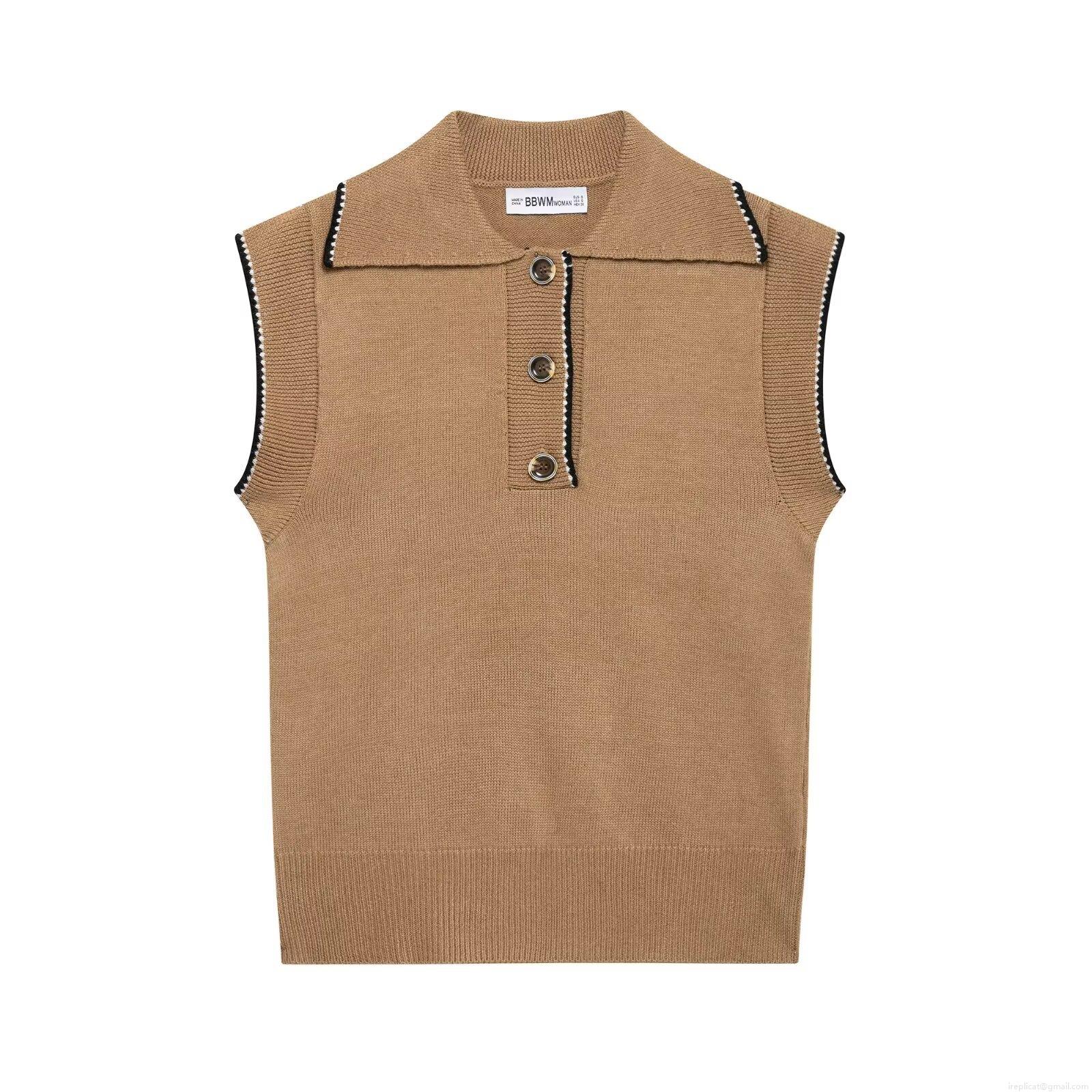 Women's Retro Knit Waistcoat Polo Collar Sleeveless Vest With Contrast Trim Buttons Casual Chic Knitted Sweater Tank Top For Women Spring Autumn Clothing