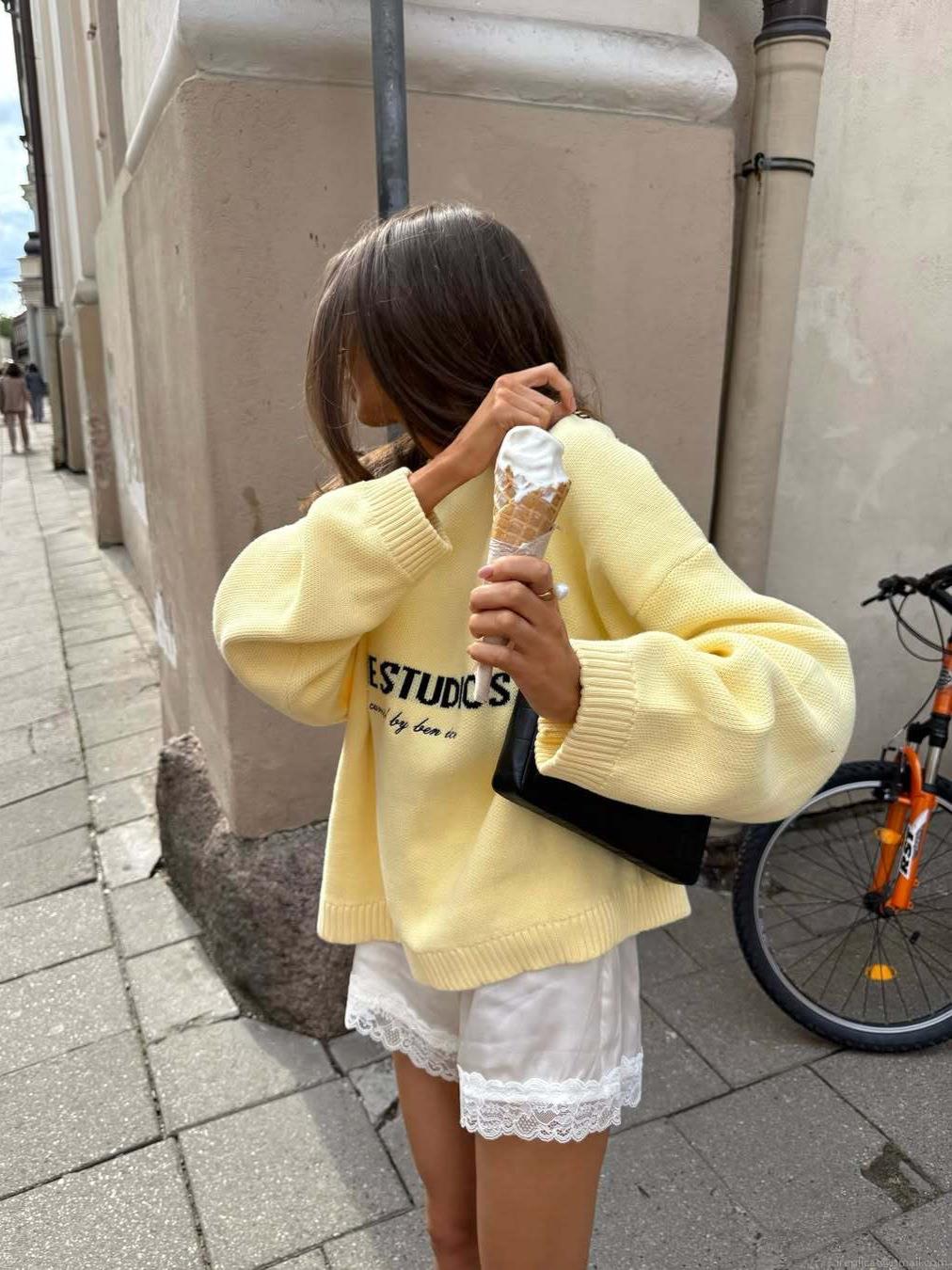 Women's Retro Letter Knit Sweater Loose Long Sleeve Round Neck Cotton Polyester Blend Pullover Casual Autumn Winter Lazy Style Tops
