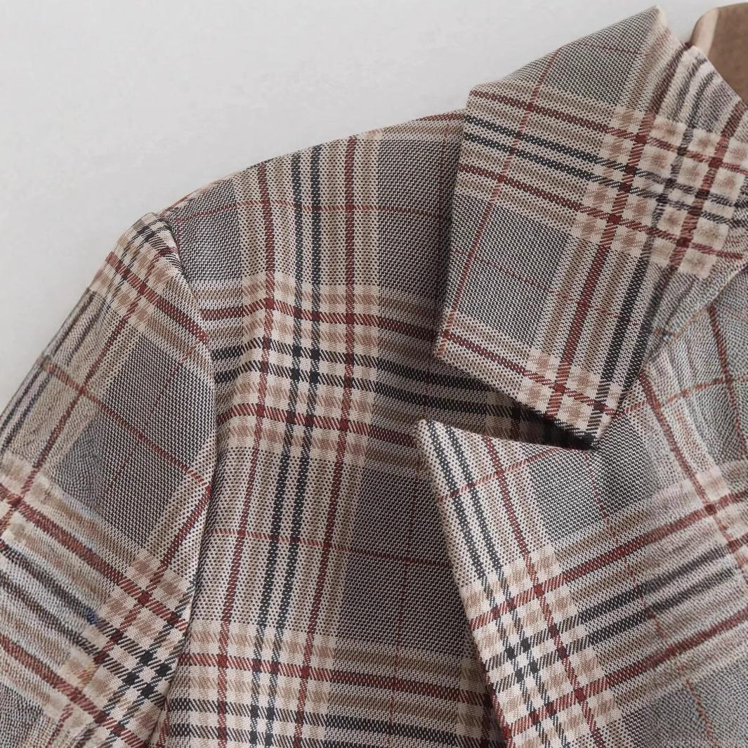 Women's Retro Plaid Blazer Jacket Casual Lapel Long Sleeve Single Breasted Short Outerwear for Office Streetwear Fall Spring Clothes