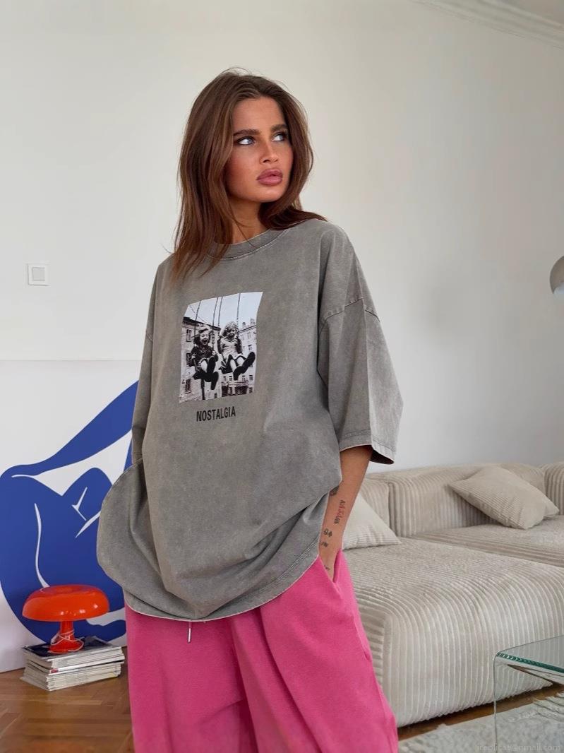 Letter Symbols, Portrait, Printing, Water-washed Distressed, Oversized, Dropped Shoulder Sleeves, Photo Print