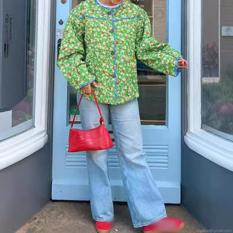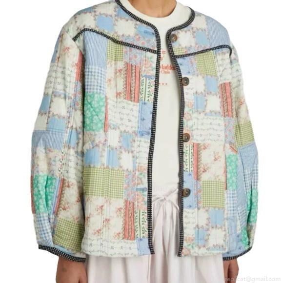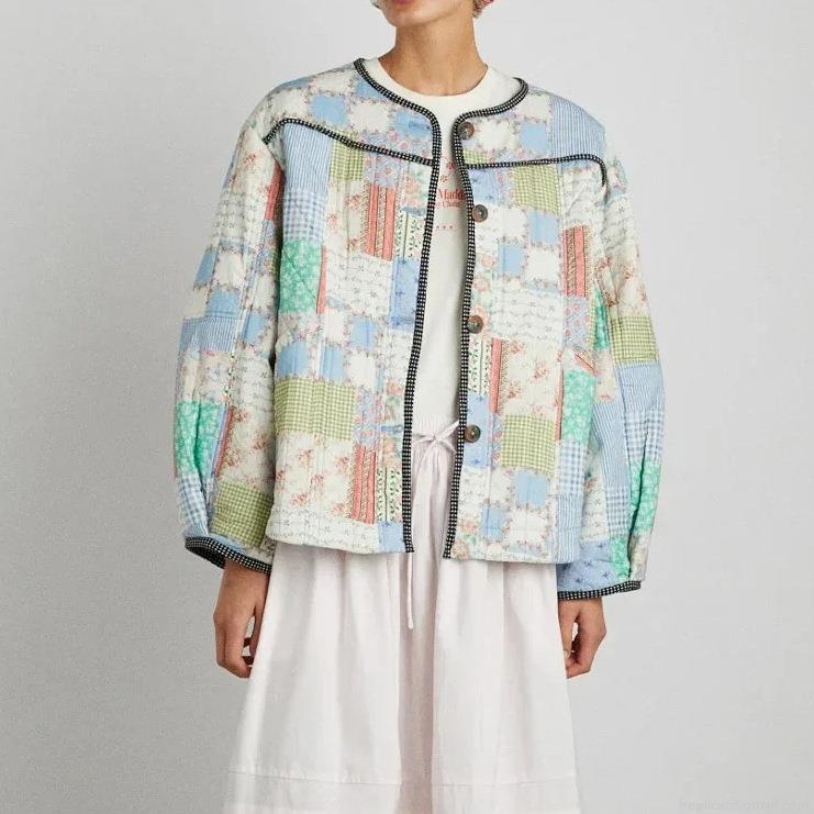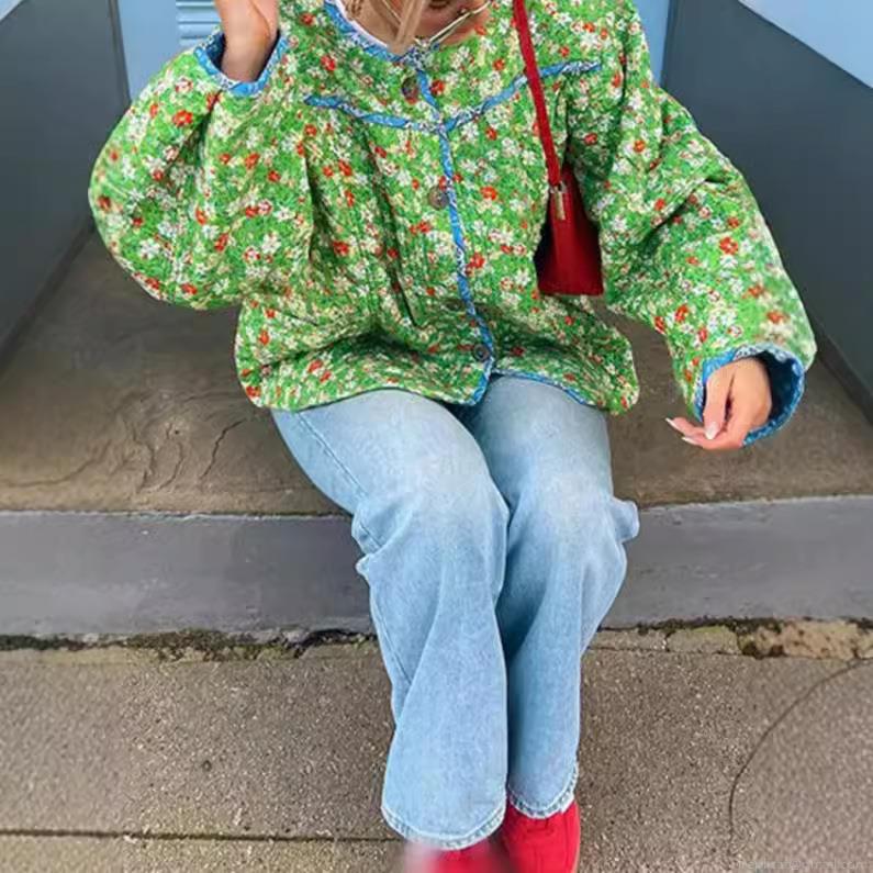 Women's Retro Quilted Patchwork Jacket Floral Print Polyester Cotton Outerwear Long Sleeve Button Down Loose Coat Casual Warm Jacket Autumn Clothing