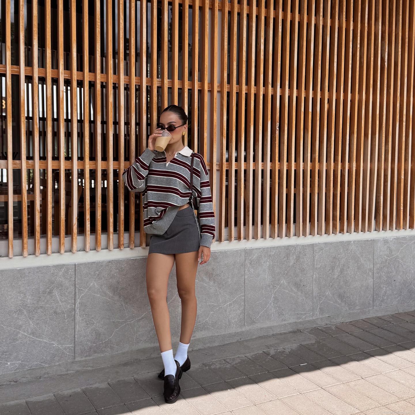 Women's Retro Striped Knitted Polo Shirt Short Sleeve 80% Viscose 20%...