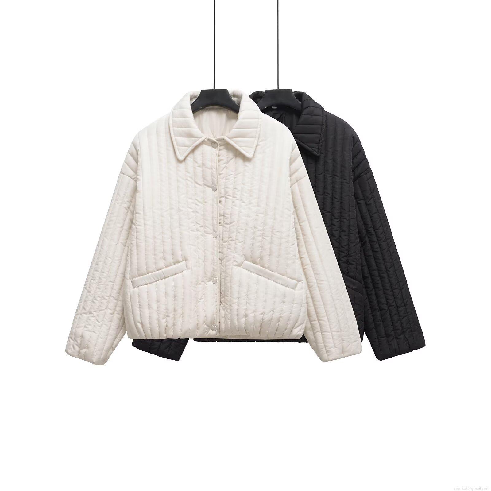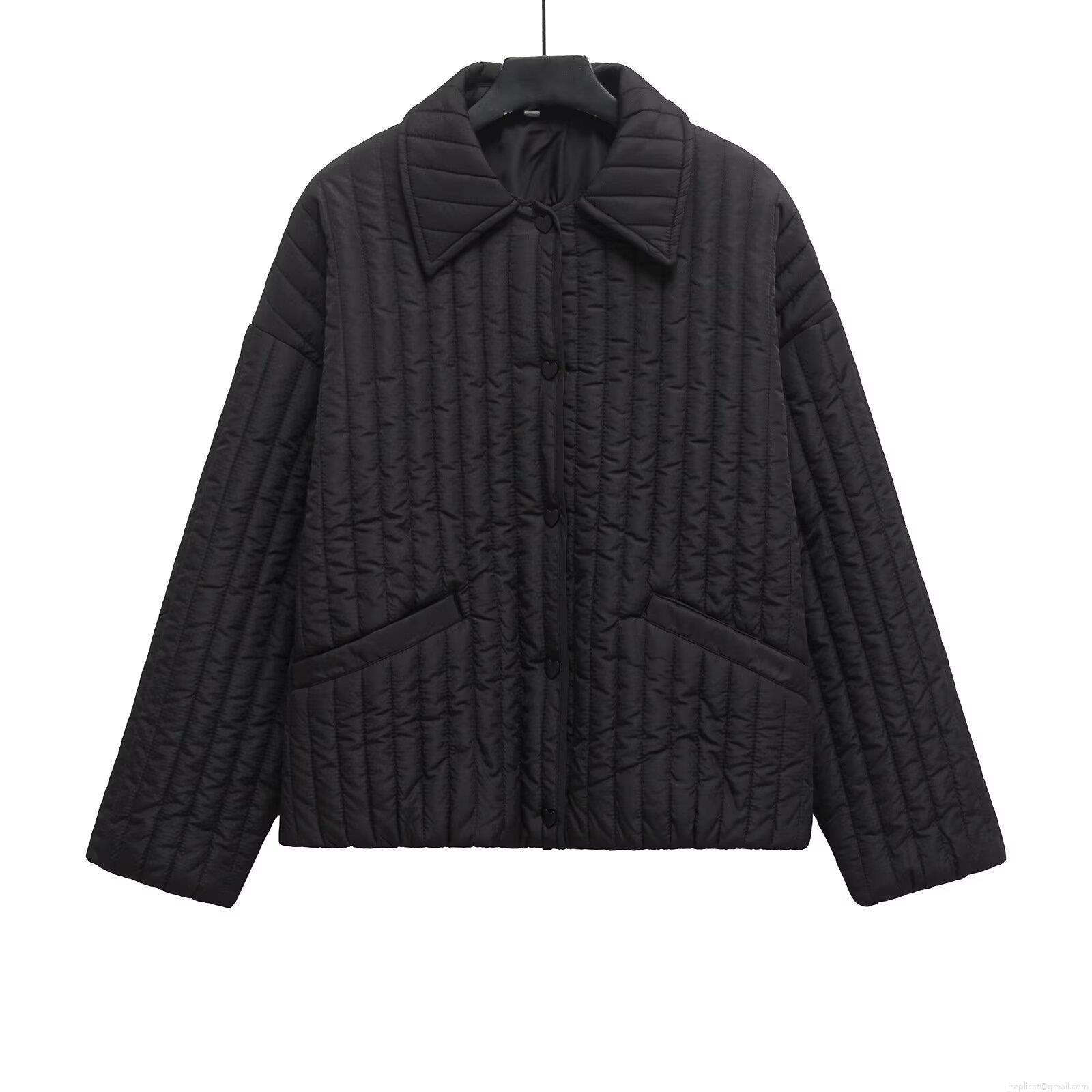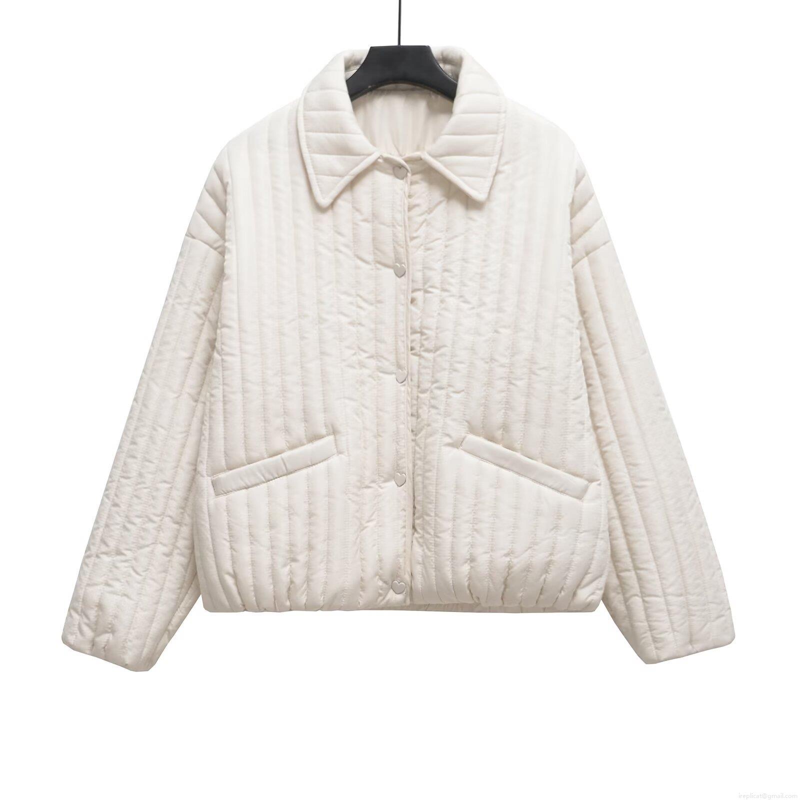 Solid Color, Vertical Stripes, Large Lapel, Metallic Heart-shaped Buttons, Vertical Quilting Process