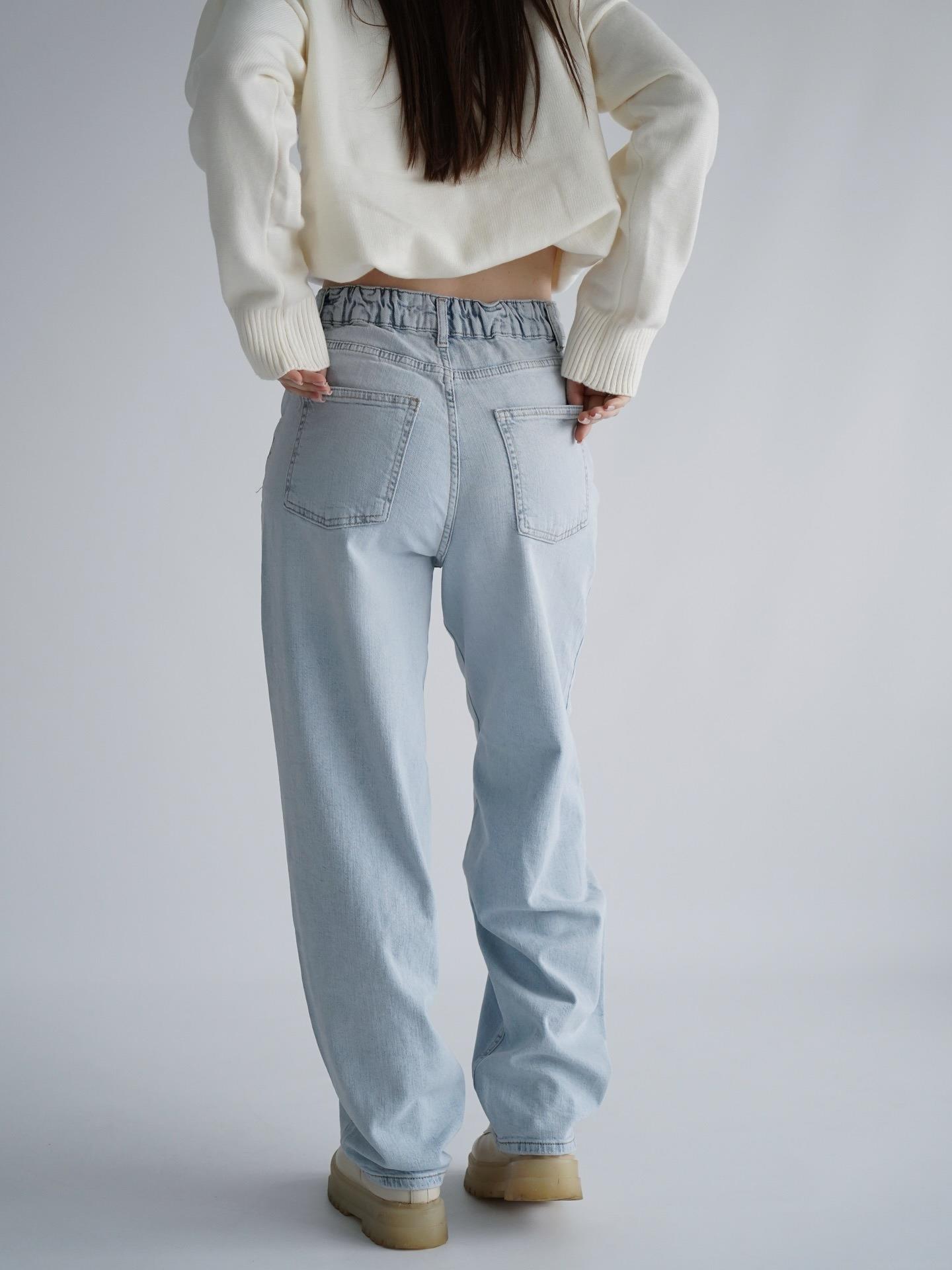 Women's Retro Washed Wide Leg Jeans Classic Light Blue 100% Cotton Denim Pants With Elastic Back Waist Streetwear Baggy Trousers