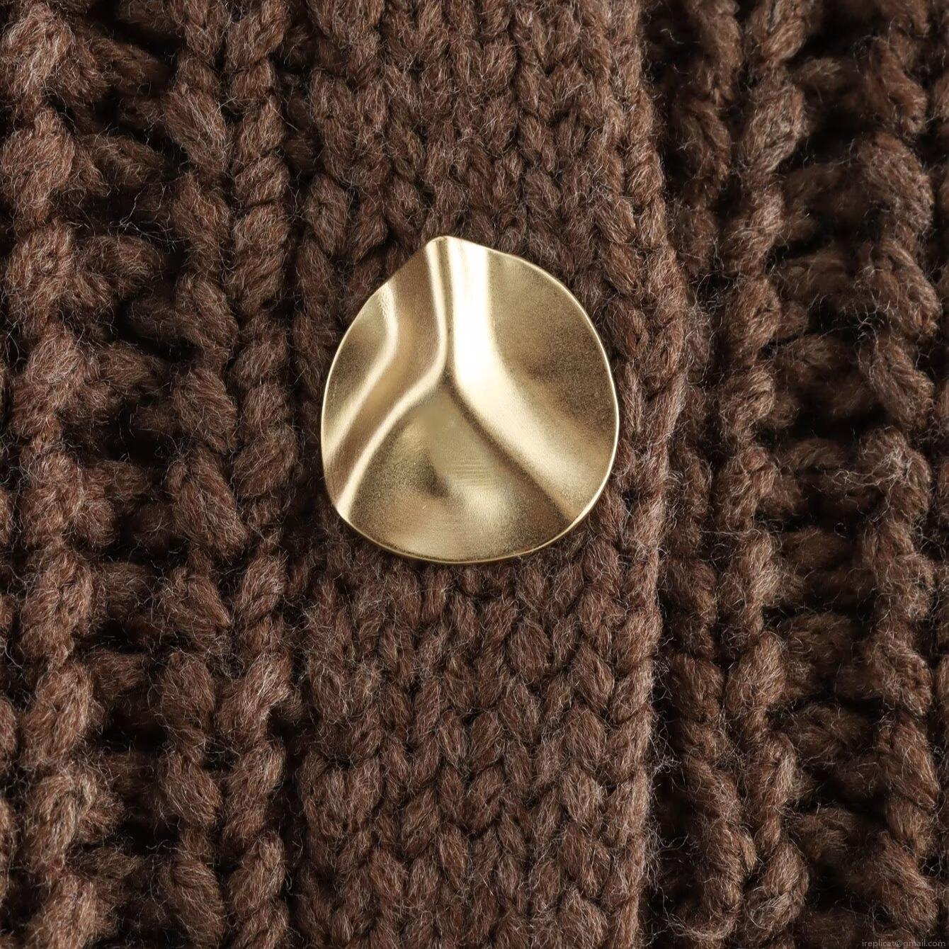 Solid Color, Chunky Knit, Metal Buttons, Sticker Bag