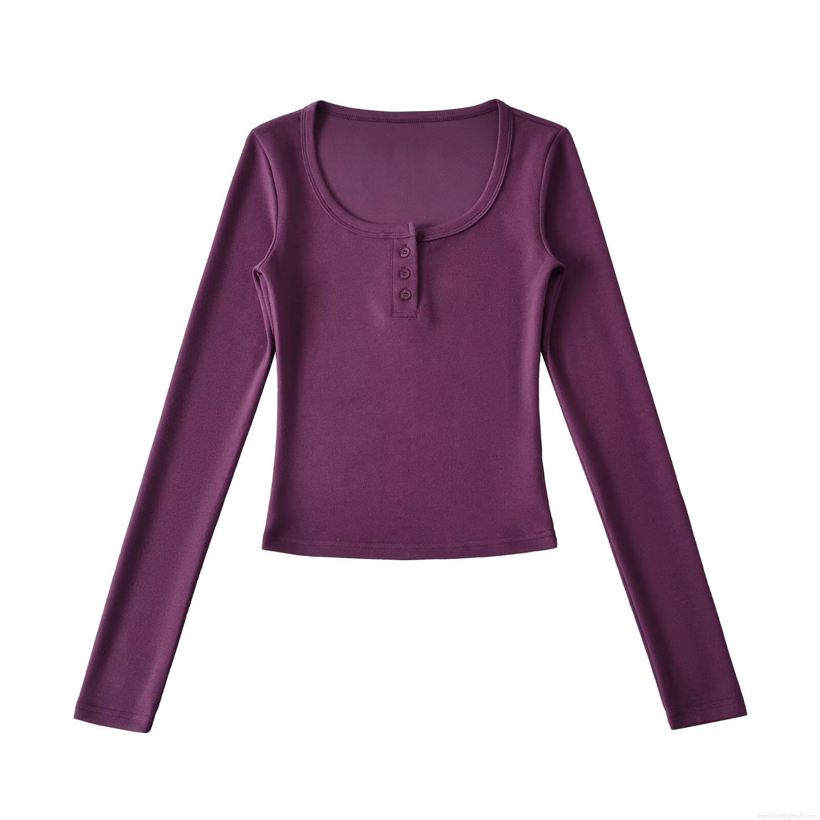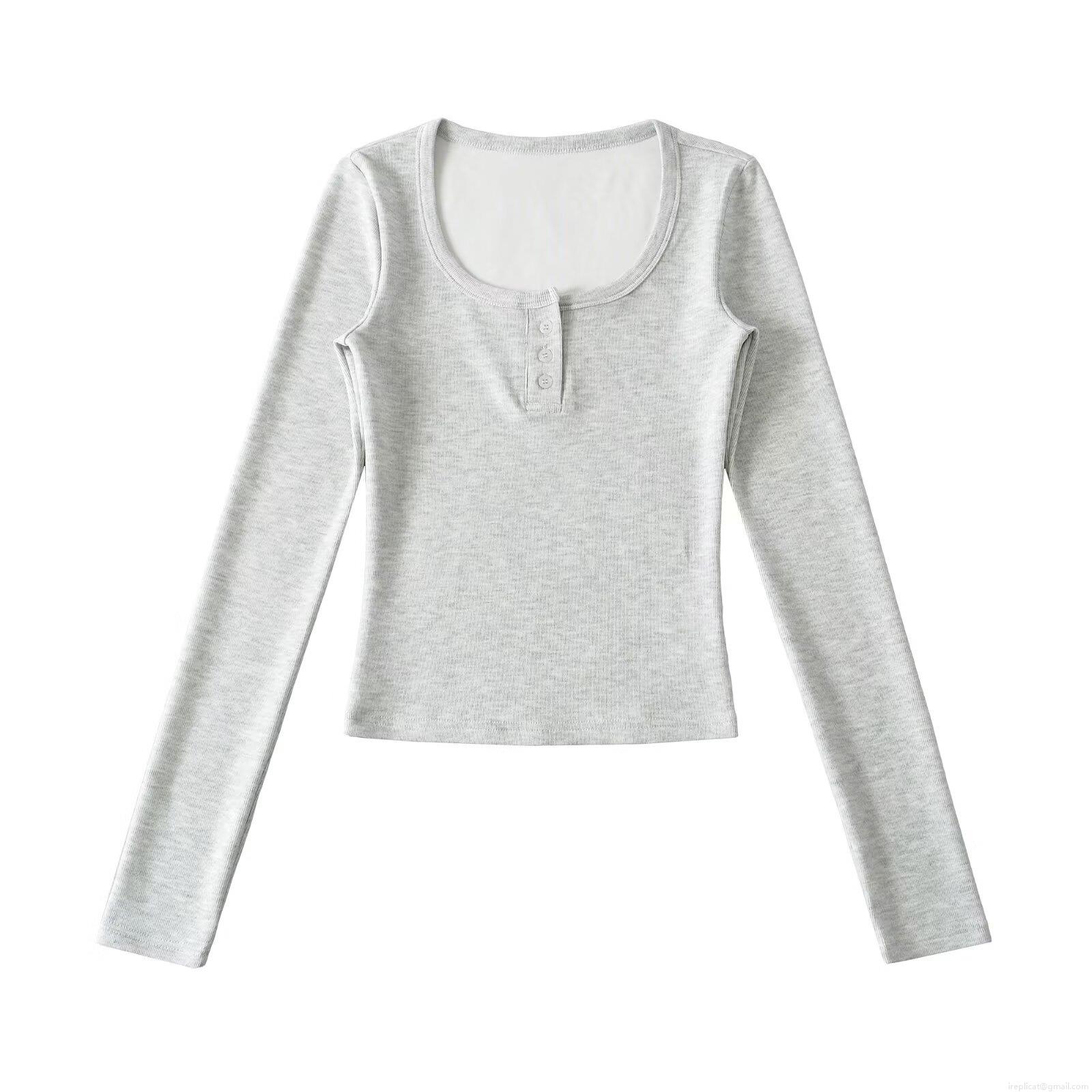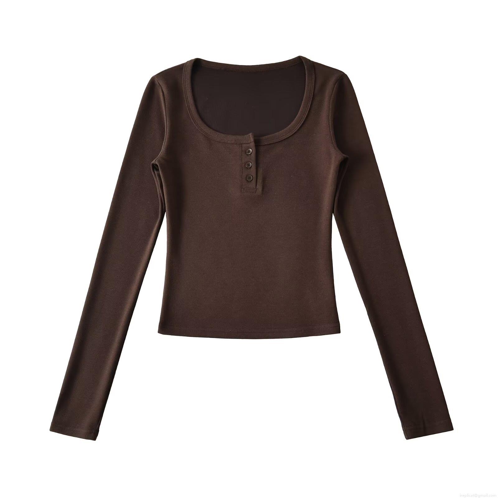 Women's Ribbed Knit Long Sleeve T-Shirt Casual Henley Neck Button Front Slim Fit Top Streetwear Solid Color Autumn Winter Tee