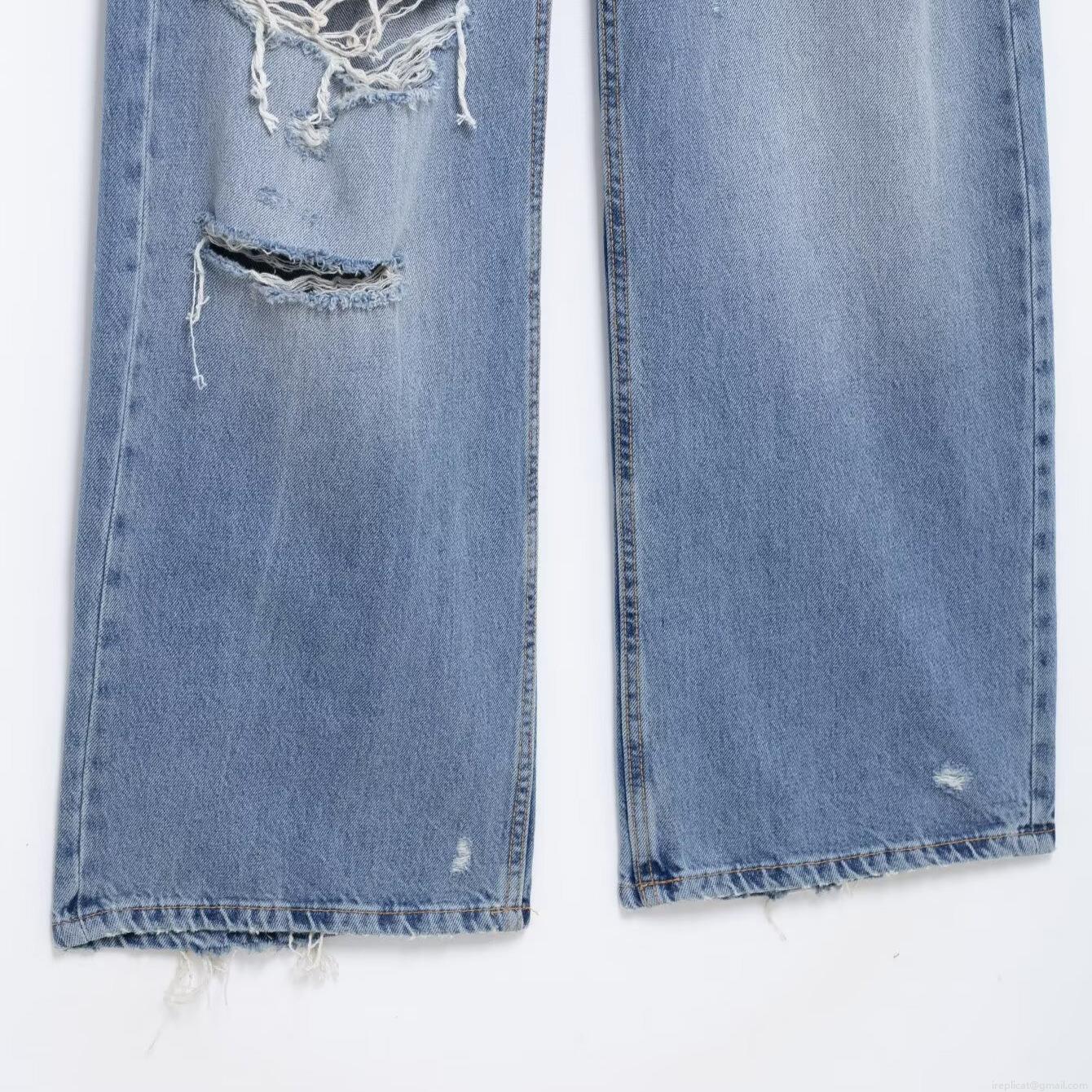 Women's Ripped Wide Leg Denim Jeans Distressed Washed Cotton Polyester Blend Pants High Waist Casual Straight Trousers Streetwear For Women