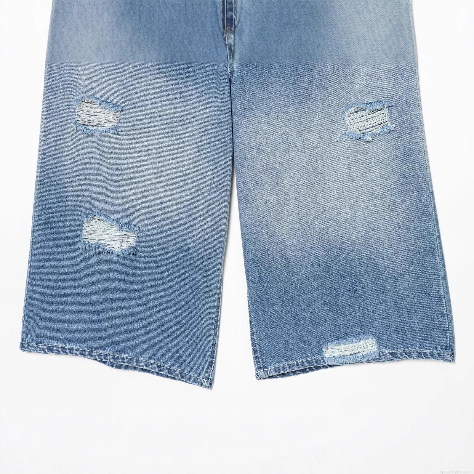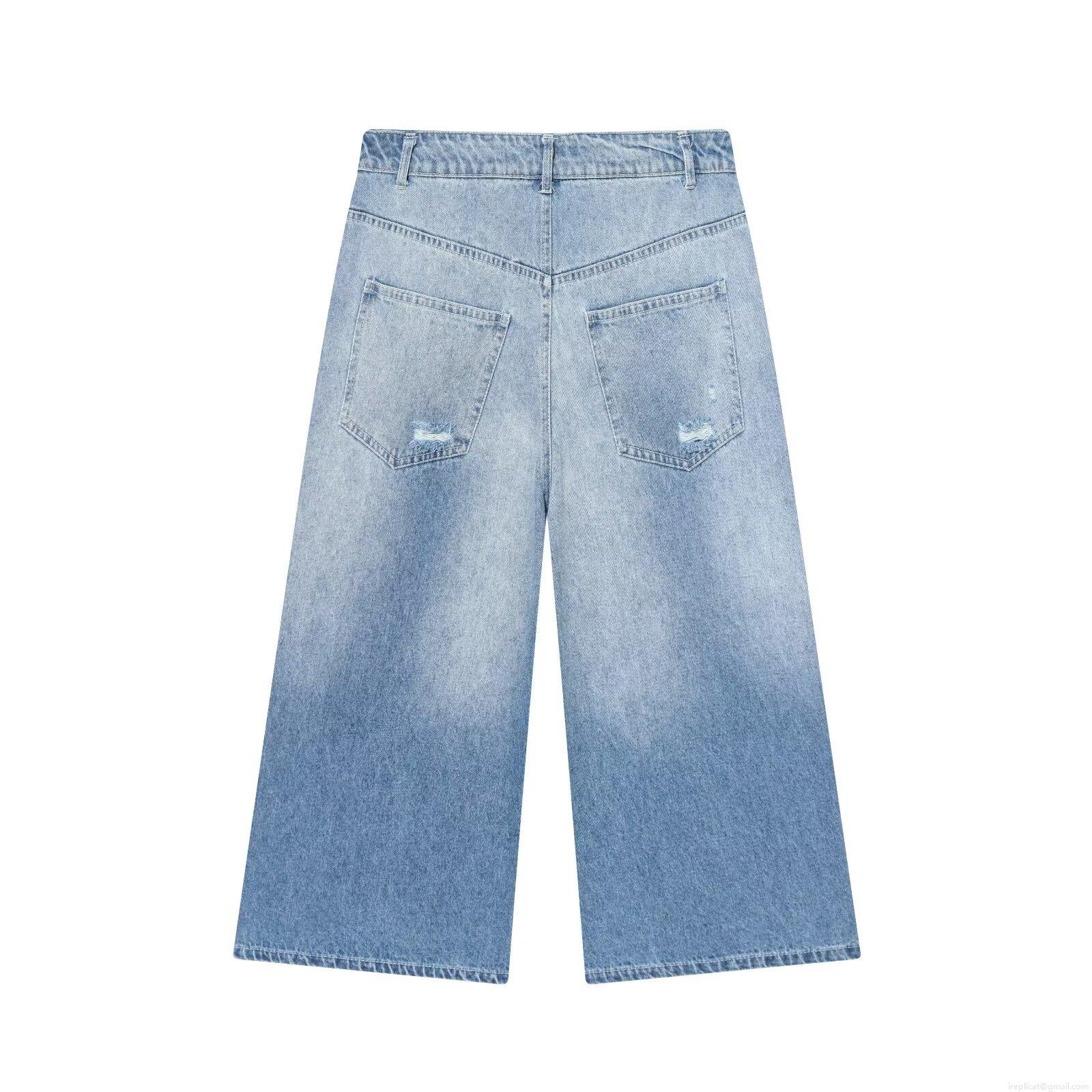 Water Wash, Hole, Zipper, Gradient, Wide-leg, Whitening