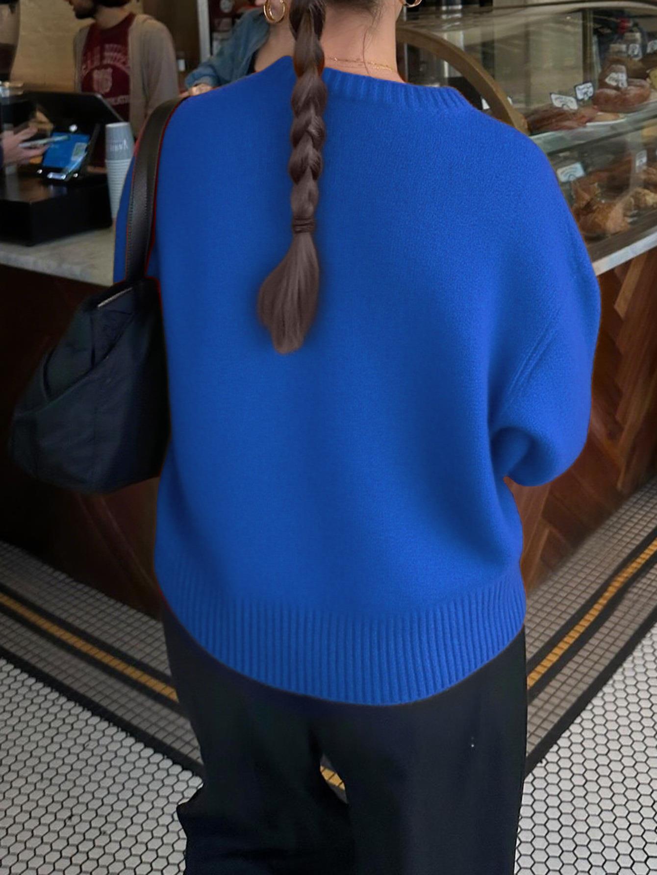 Women's Round Neck Knitted Sweater 52% Acrylic Blend Solid Color Long Sleeve Loose Fit Pullover For Daily Casual Streetwear Autumn Winter