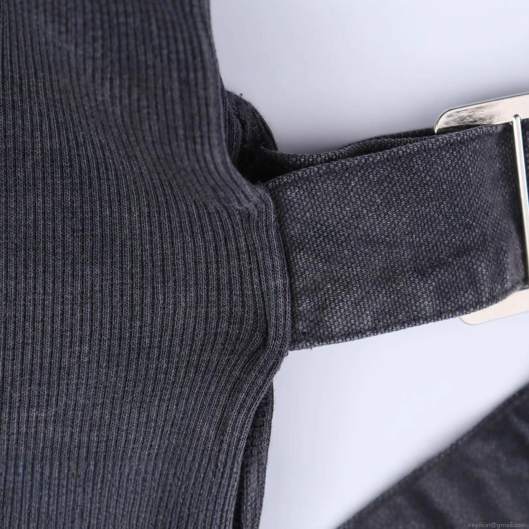 Irregularly Cut Diagonal Hem, Silver Metal Adjustment Buckle, Matching Color Straps, Ribbed Texture