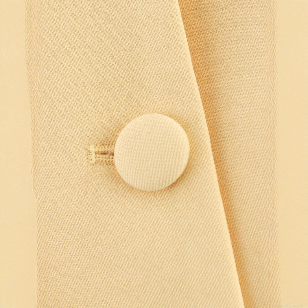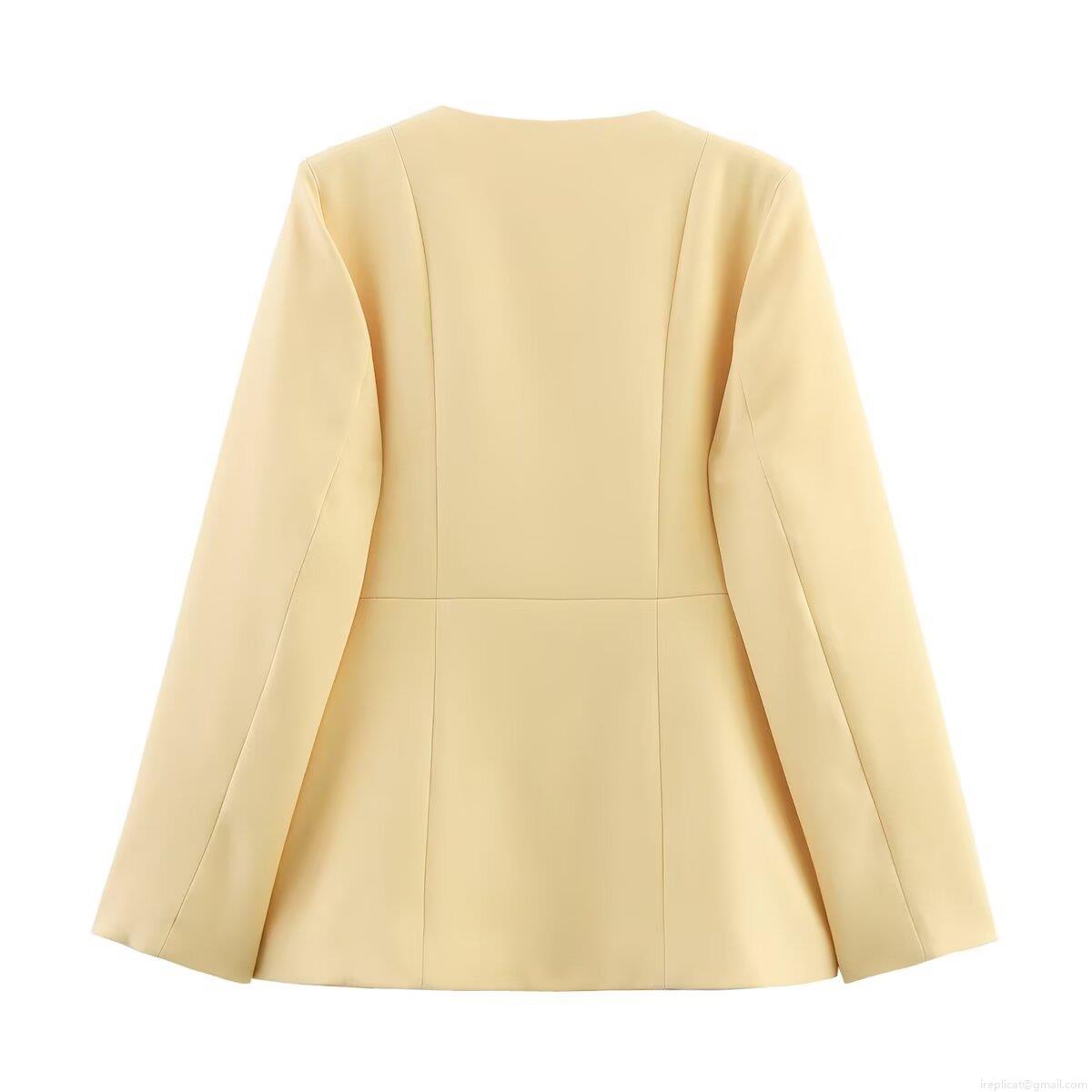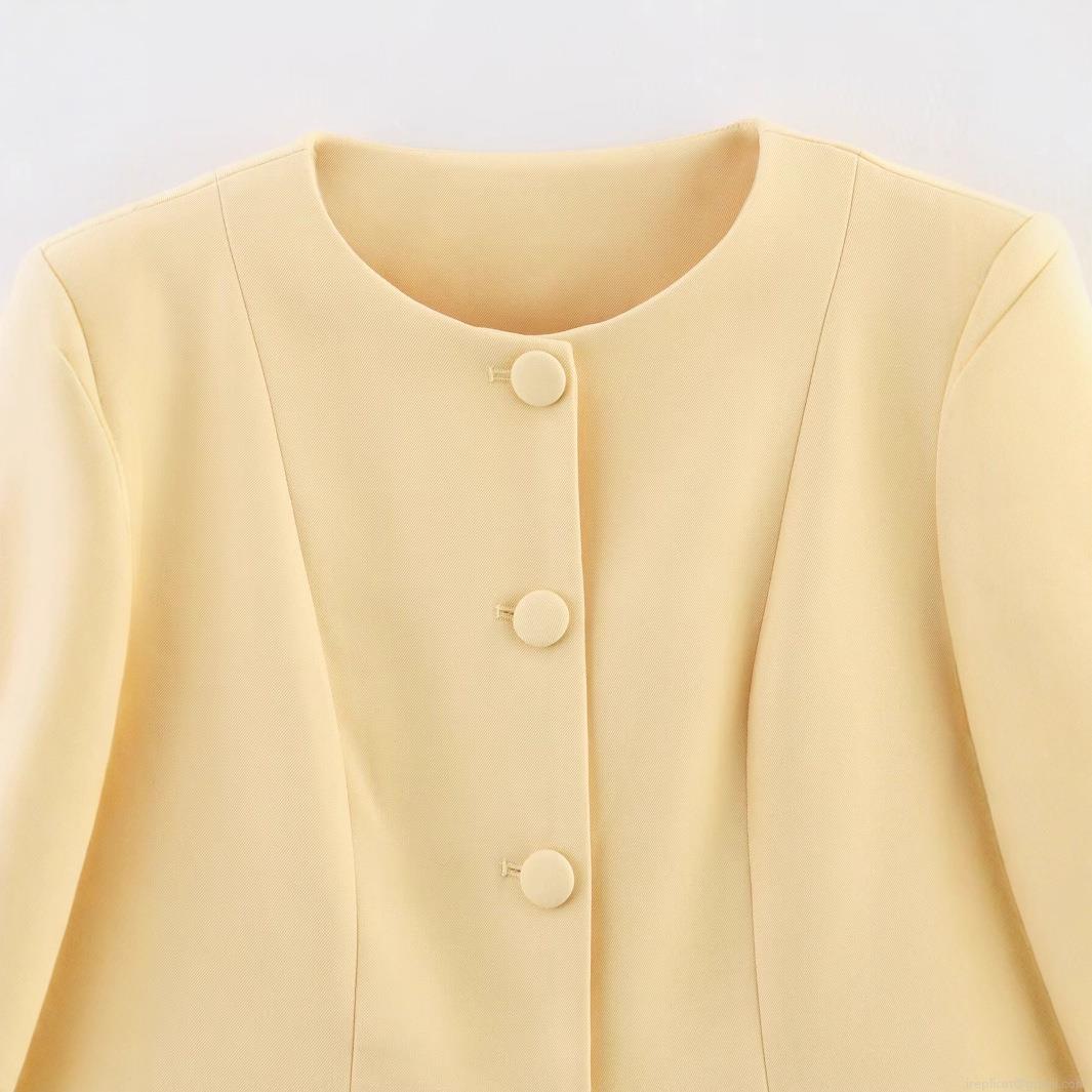 Women's Round Neck Long Sleeve Short Jacket Solid Light Yellow Slim Fit Single Breasted Buttons Twill Polyester Outwear Coat For Ladies Office Casual Wear