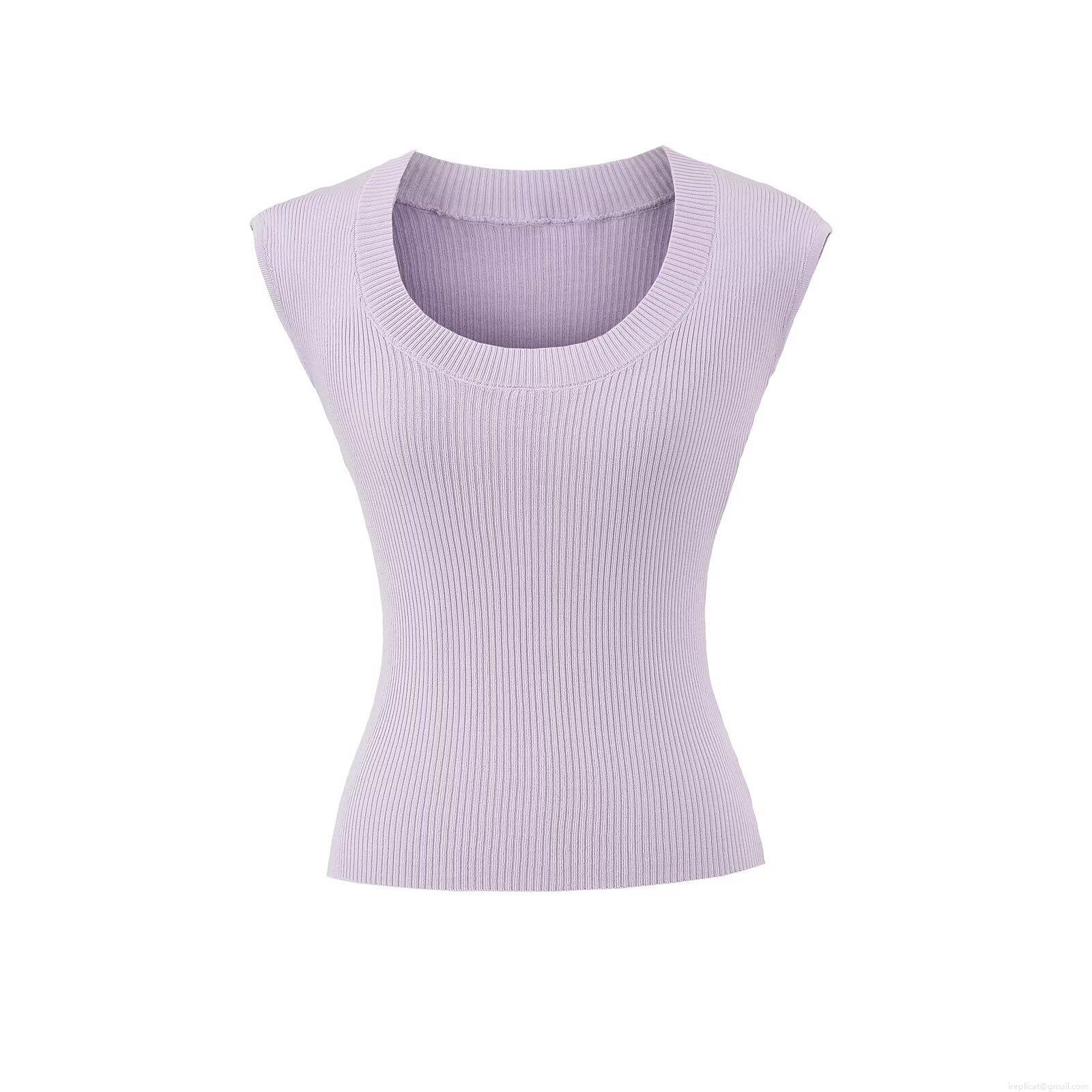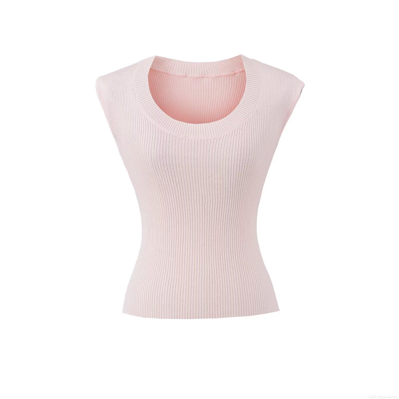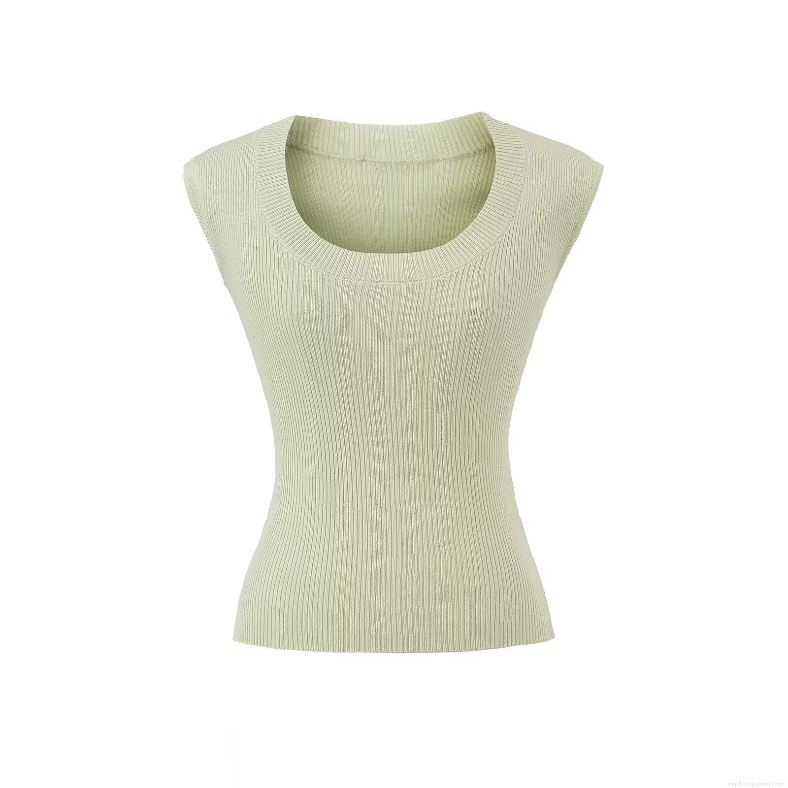 Women's Round Neck Sleeveless Ribbed Knit T-Shirt Slim Fit Solid Color Viscose Polyester Summer Streetwear Casual Tank Top Vest