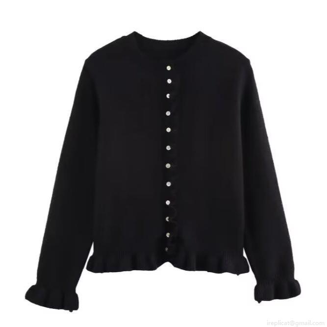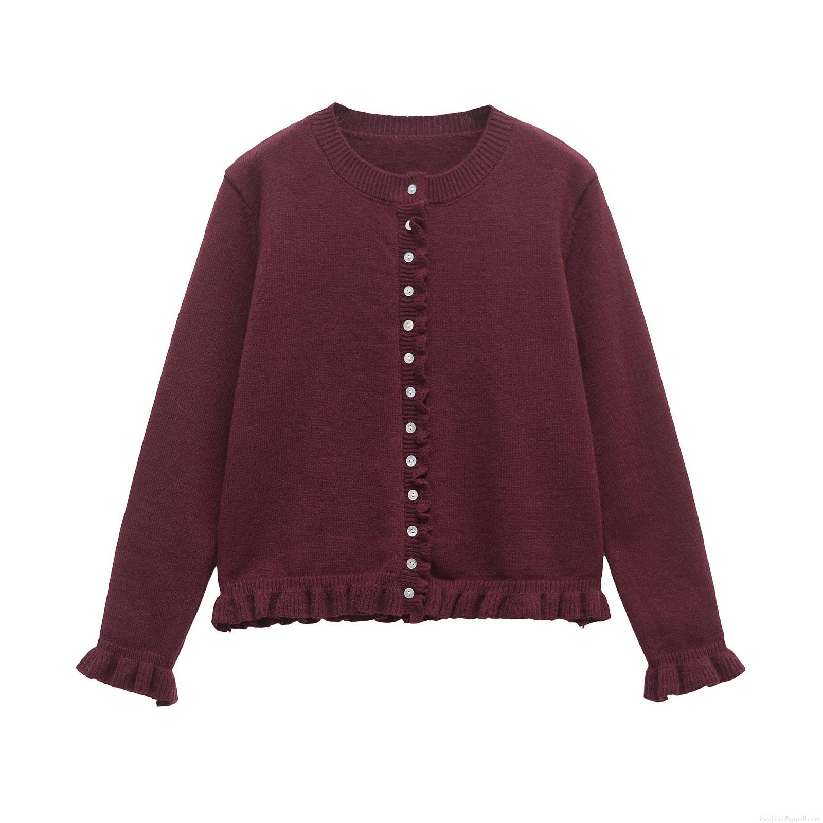 Women's Ruffle Trim Knit Cardigan Sweet Round Neck Long Sleeve Button Down Sweater Casual Solid Color Ruffled Edges Knitwear Top For Women Ladies