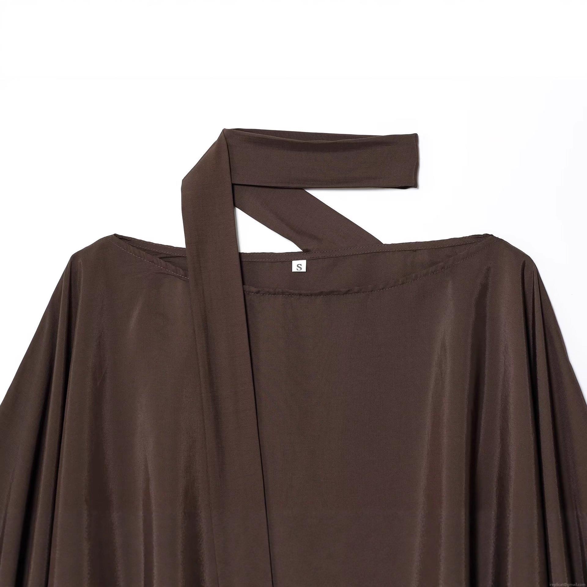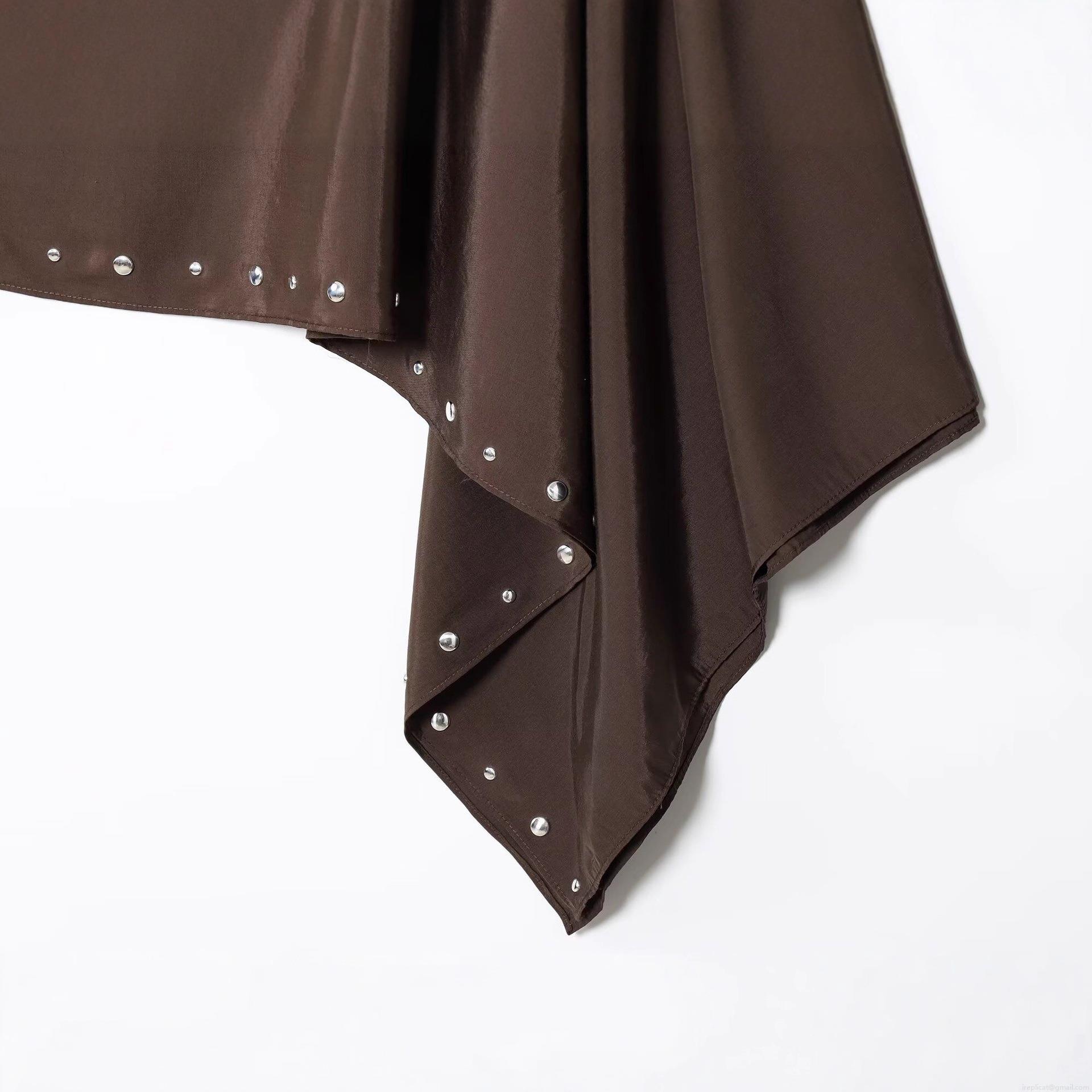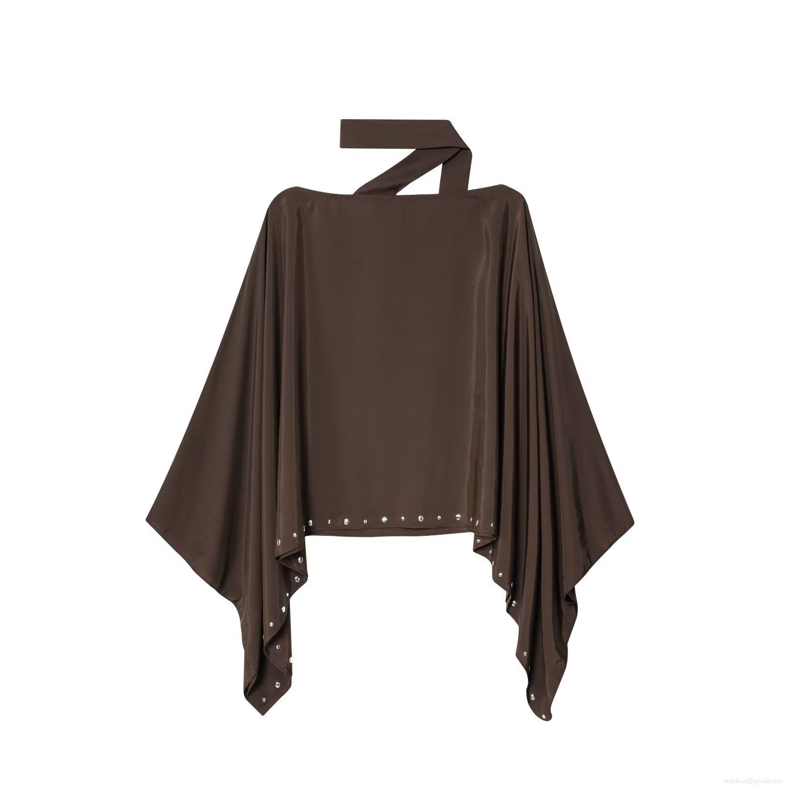 Women's Satin Cape Jacket With Rivet Studded Hem Short Batwing Sleeve Outerwear Scarf Neck Coffee Brown Elegant Fall Streetwear For Ladies