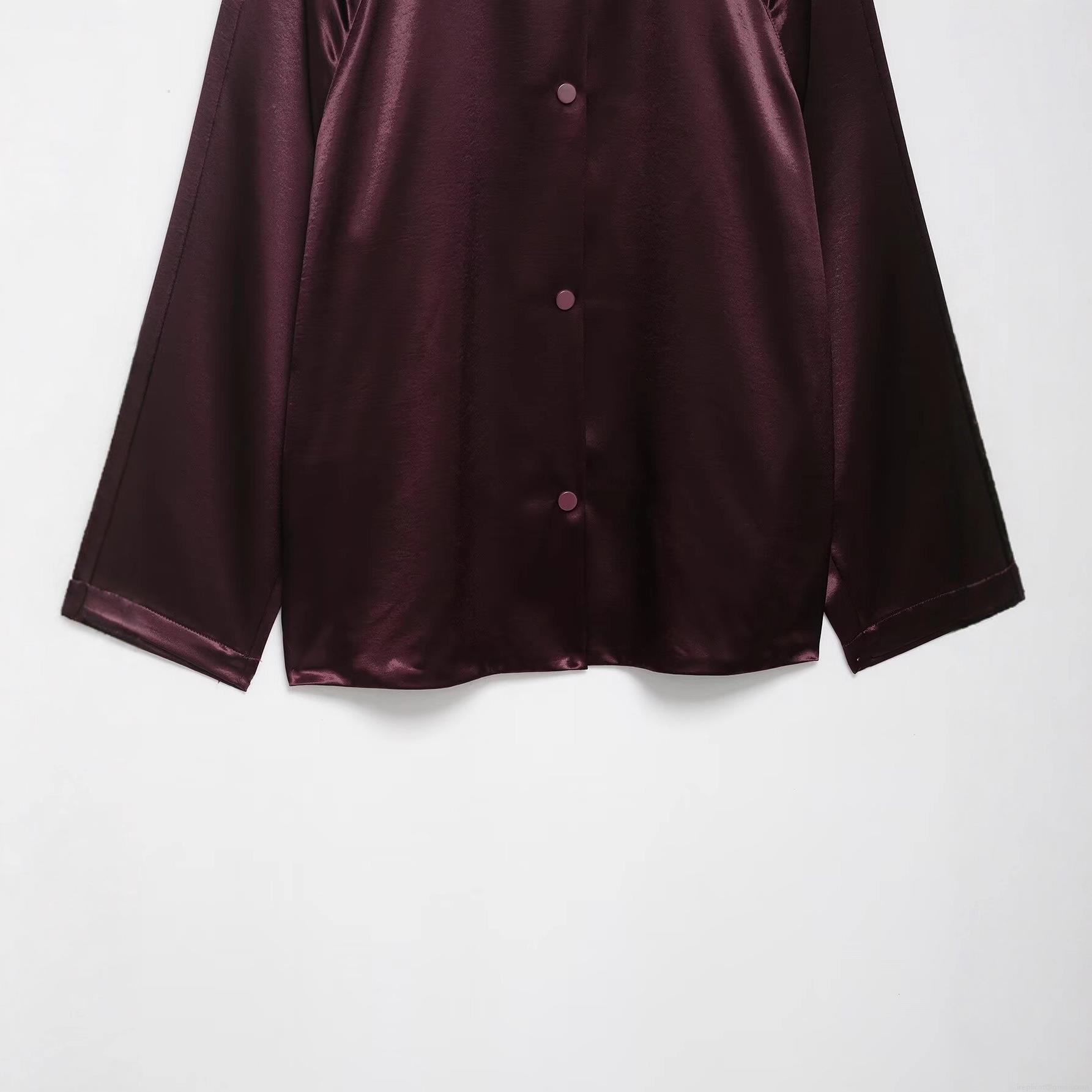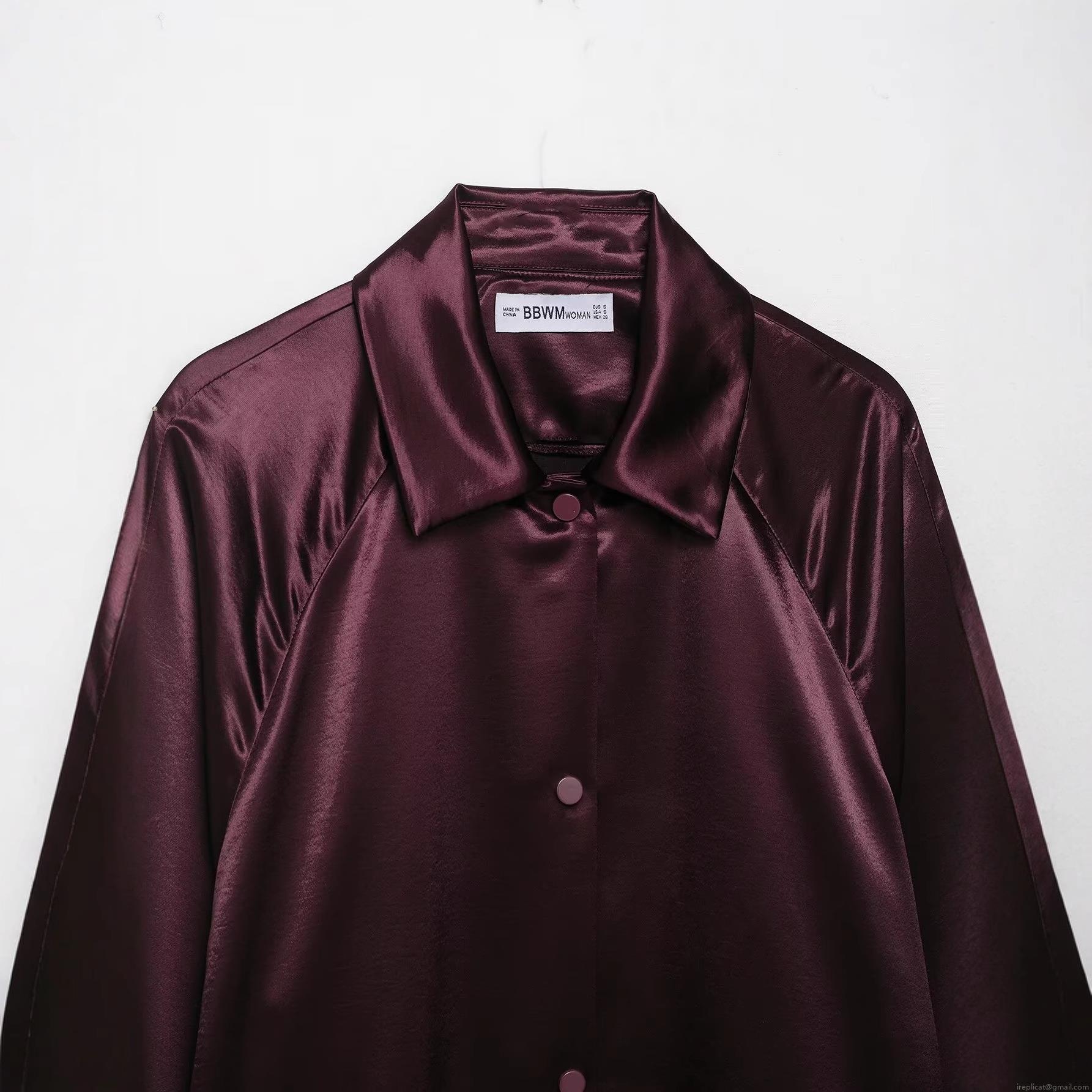 Women's Satin Jacket Outerwear 100% Polyester Silk Texture Long Sleeve Button Down Lapel Casual Party Office Elegant Streetwear Loose Fit Versatile Tops