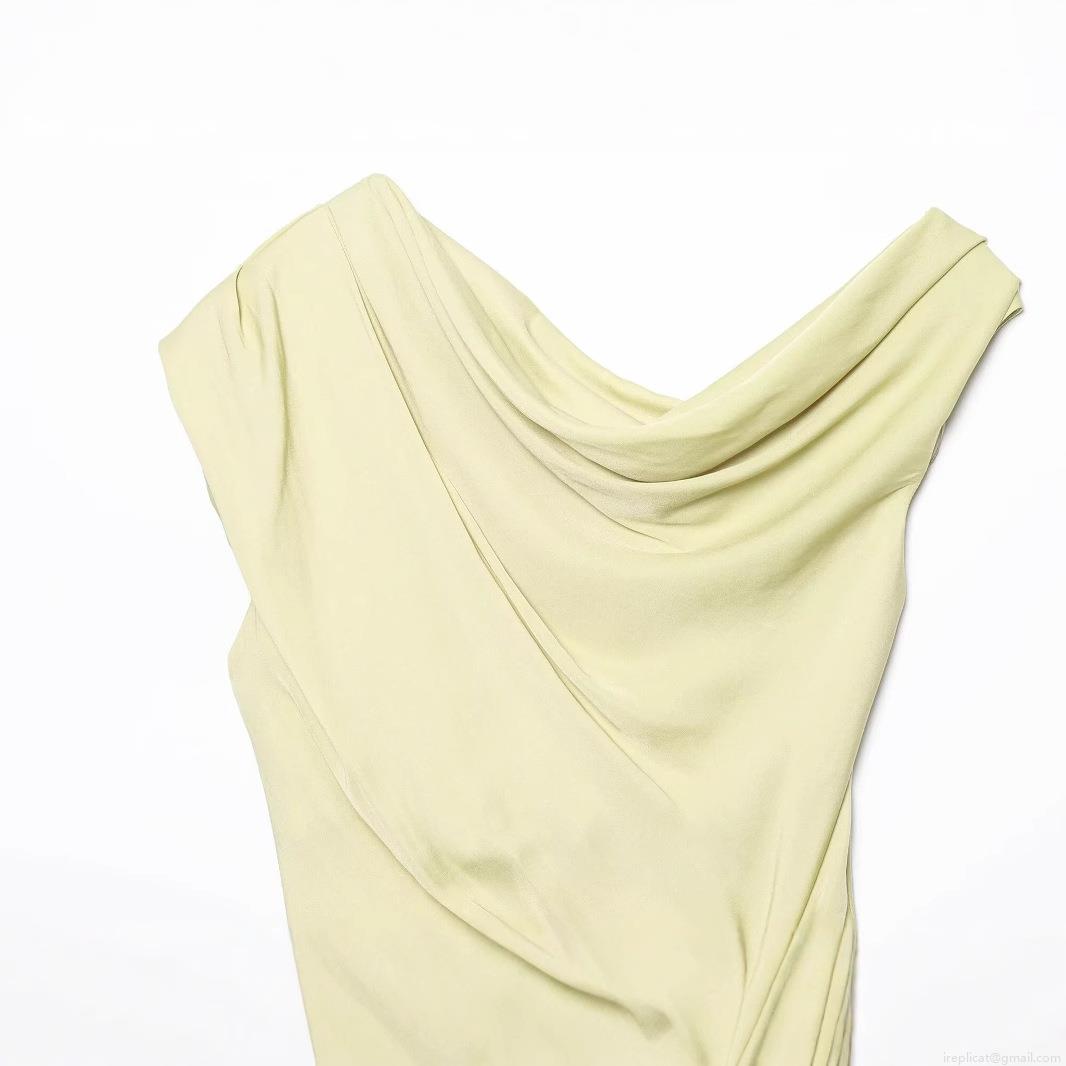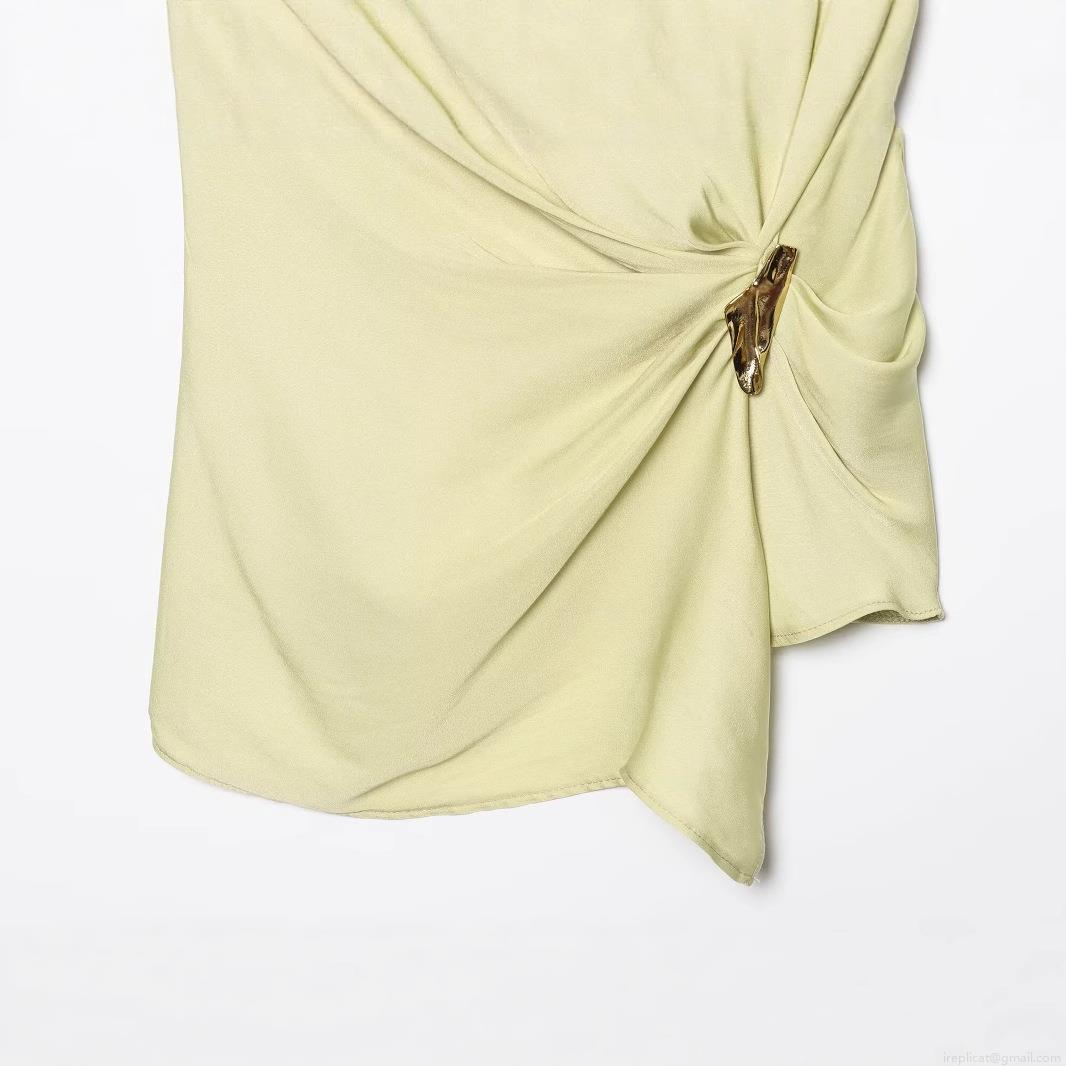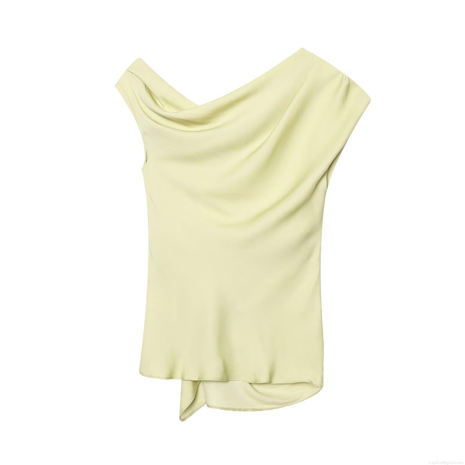 Women's Sexy Asymmetric Slant Neck Sleeveless Top Elegant Pleated Satin Texture Blouse With Metal Buckle For Summer Party Dating Slim Fit Pullover Shirt