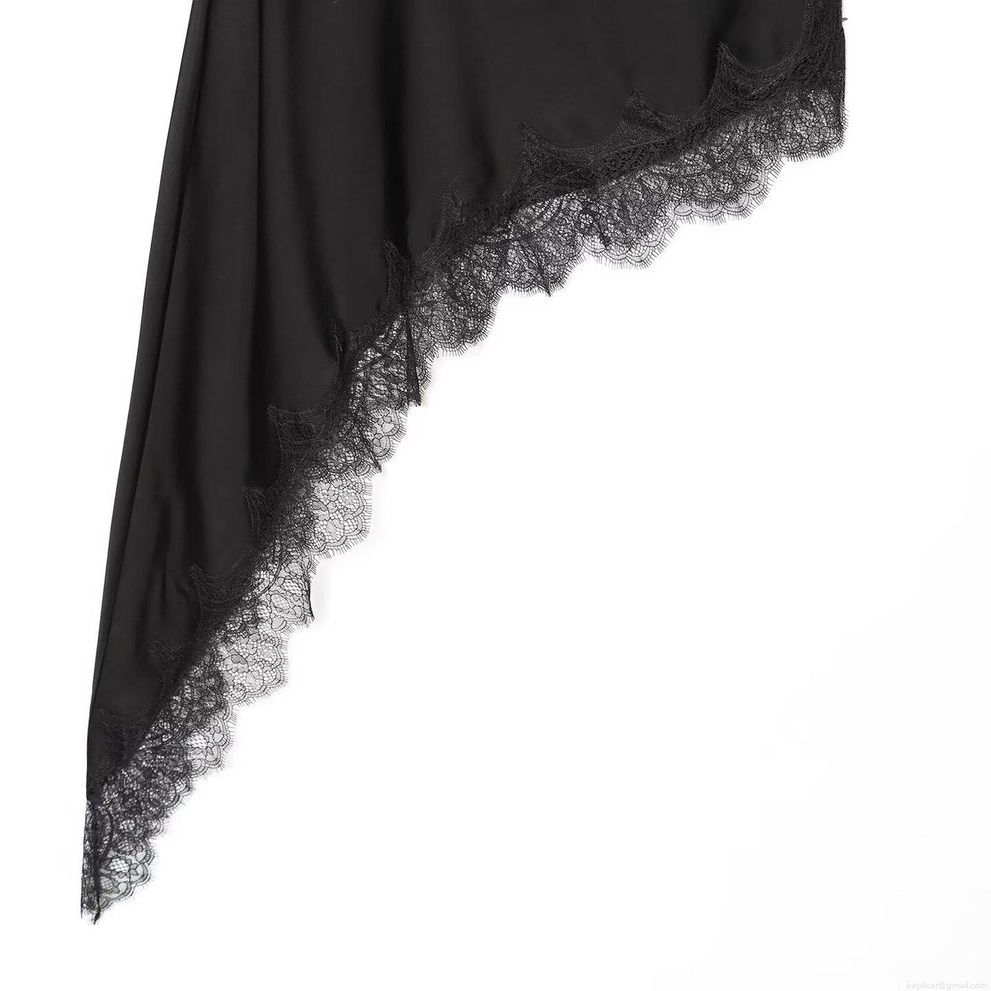 Women's Sexy Asymmetrical Diagonal Neck Lace Patchwork Top Acetate Satin Sleeveless Blouse For Party Vacation Elegant Slim Fit Solid Color Top