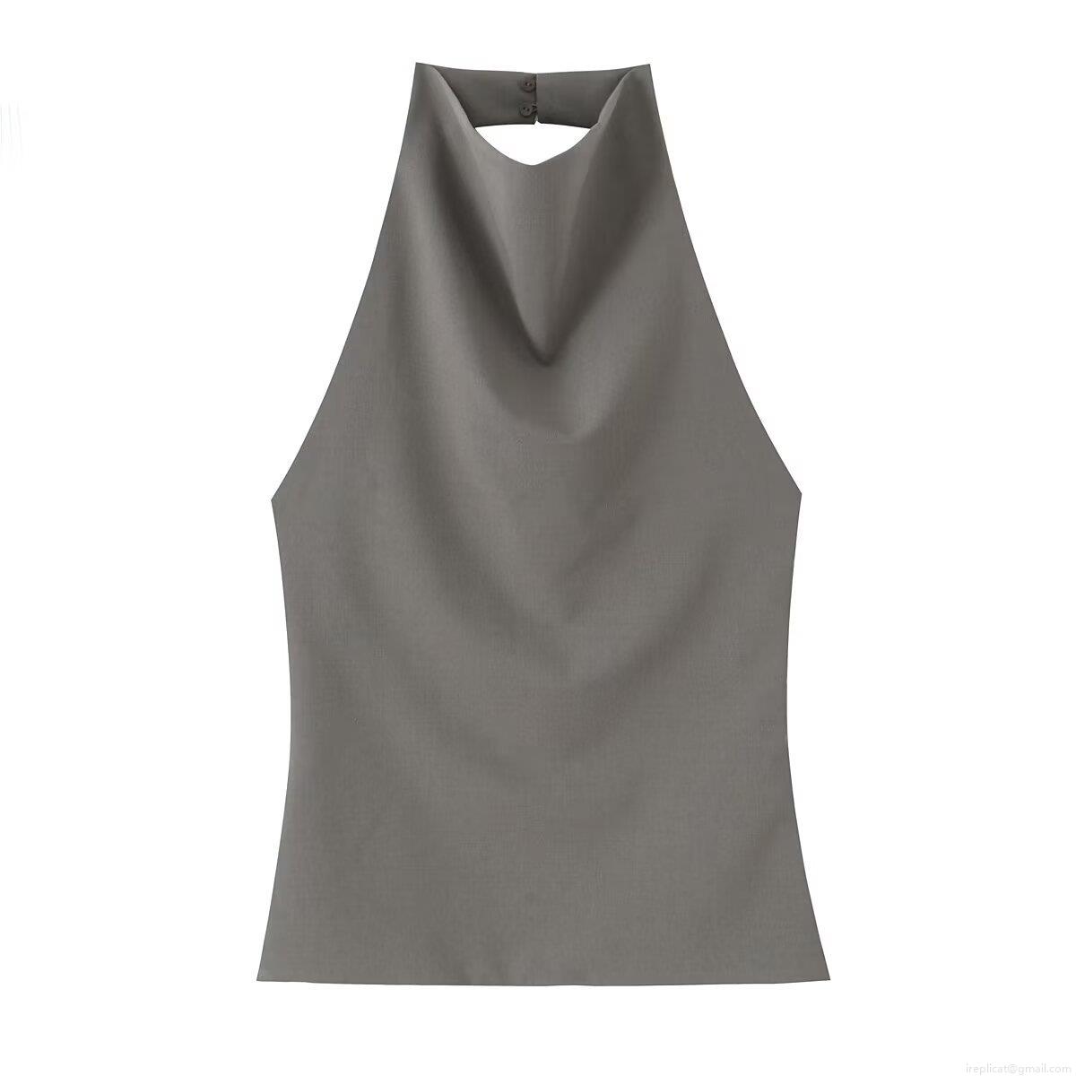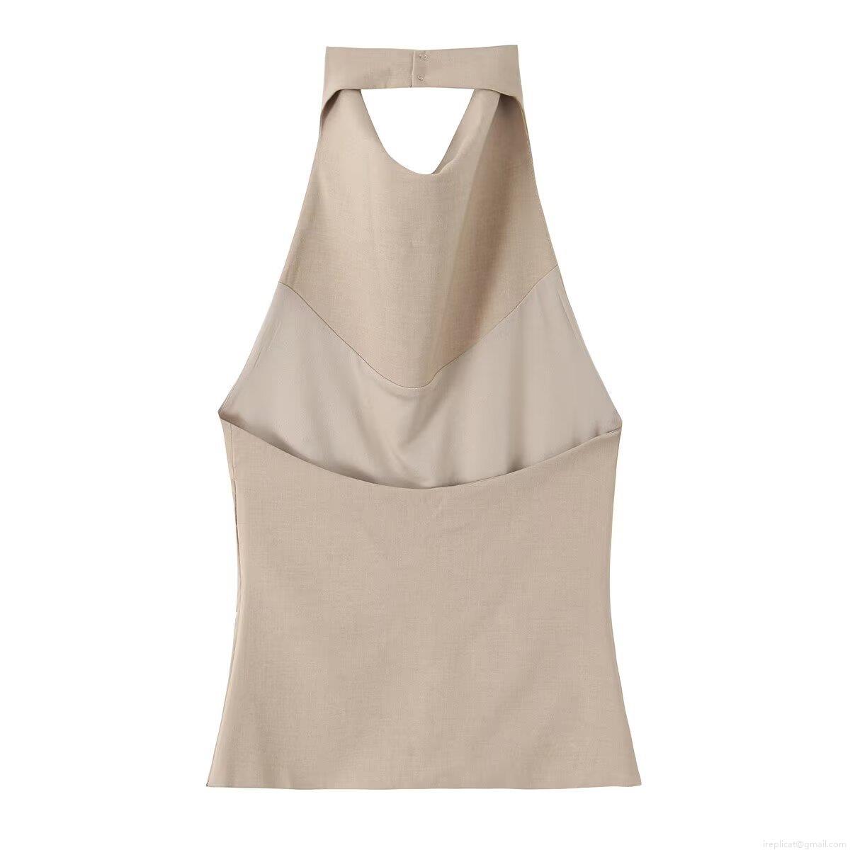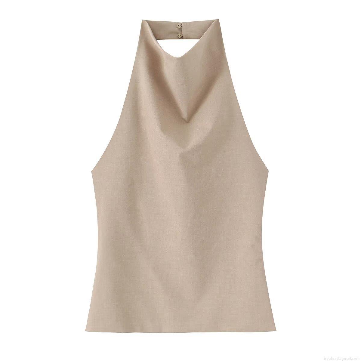 Women's Sexy Backless Halter Neck Sleeveless T-shirt Polyester Cotton Linen Texture Solid Color Street Style Casual Top for Vacation Party