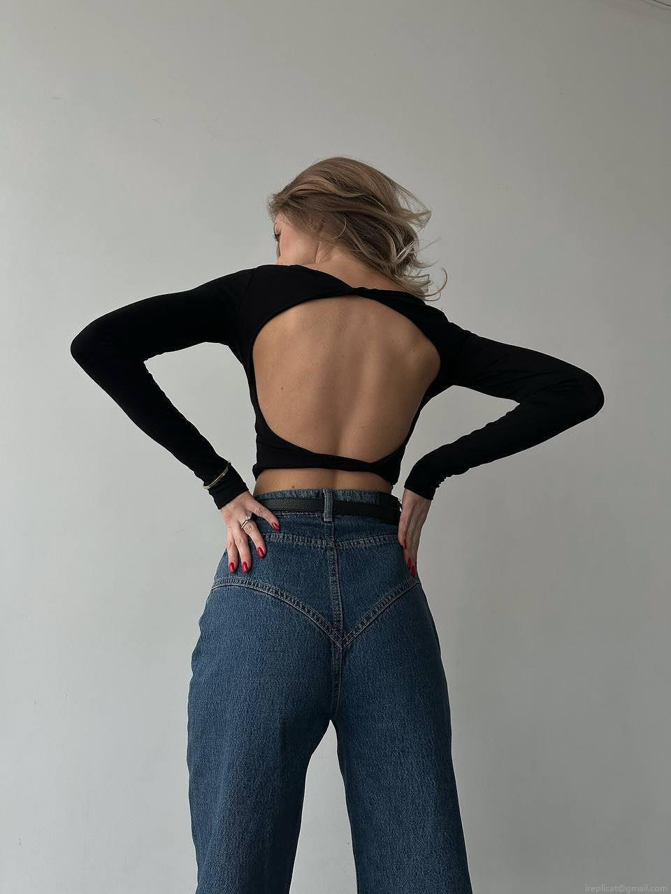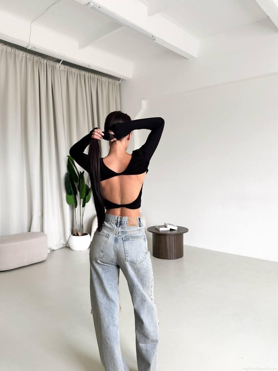 Women's Sexy Backless Long Sleeve T-Shirt Solid Color Round Neck Slim Fit Crop Top Cotton Blend Ribbed Knit Streetwear Basic Tee