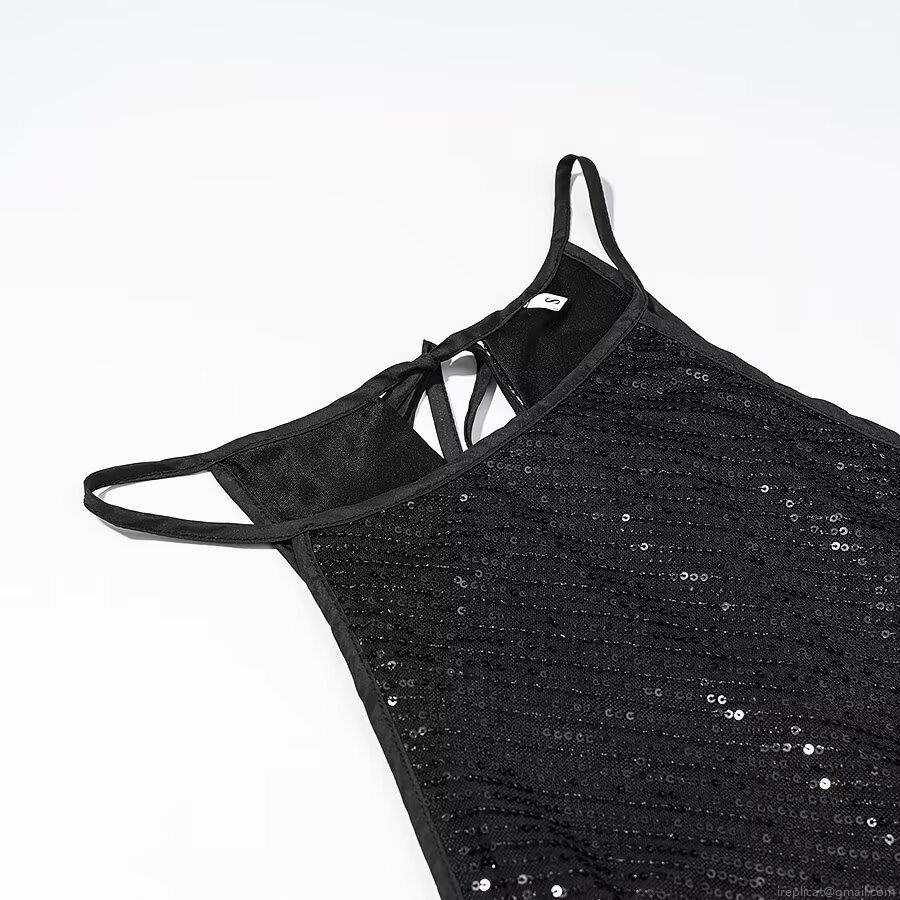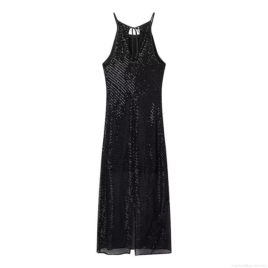 Women's Sexy Black Sequin Halter Maxi Dress Elegant Backless Lace Up Slit Evening Party Club Night Long Gown Dress