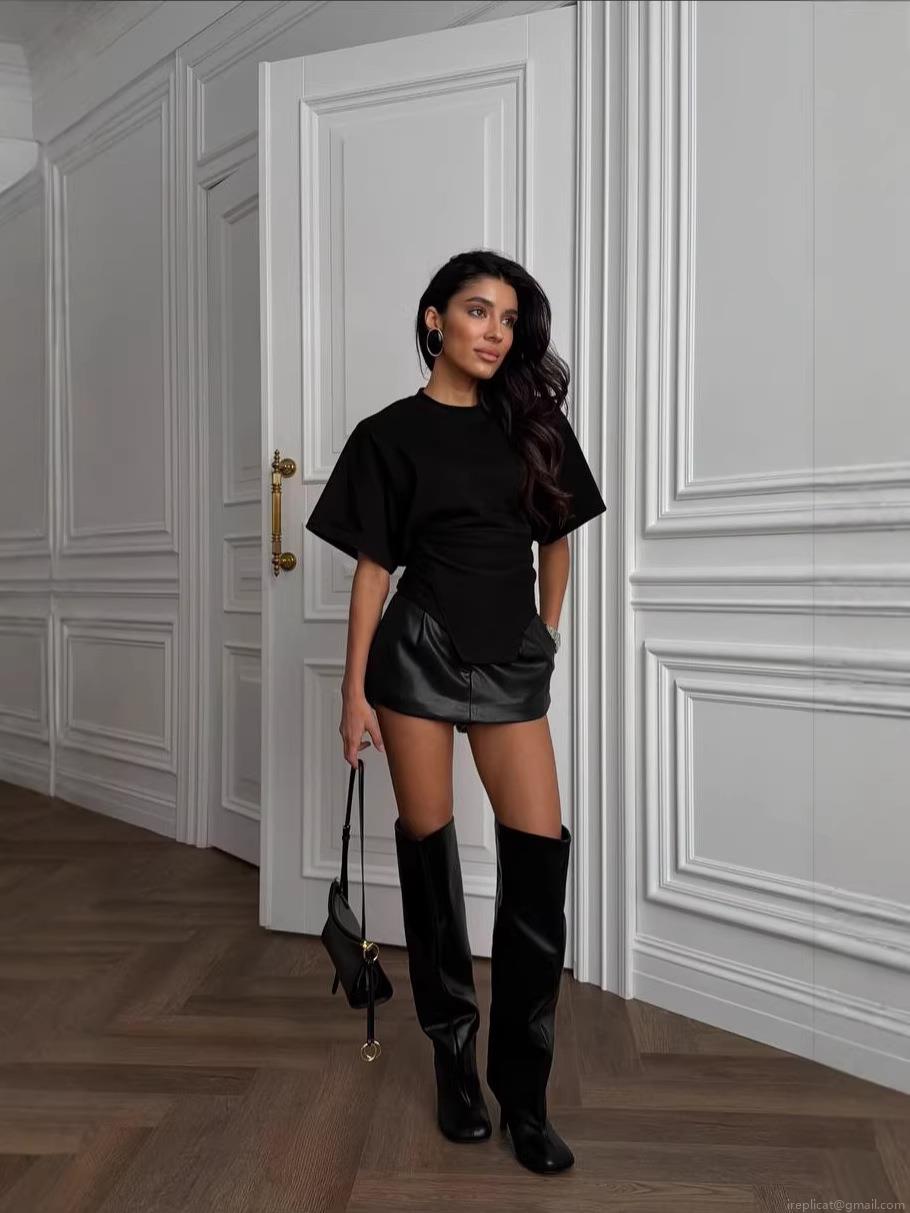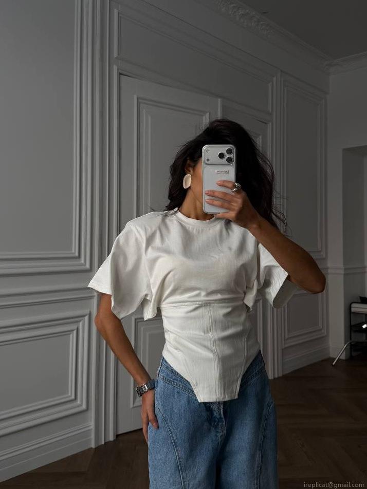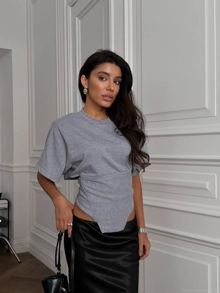 Women's Sexy Corset Style Cotton T-Shirt Slim Fit Short Sleeve Round Neck Solid Color Top Summer Minority Design Waist Cinched Streetwear Tee for Ladies