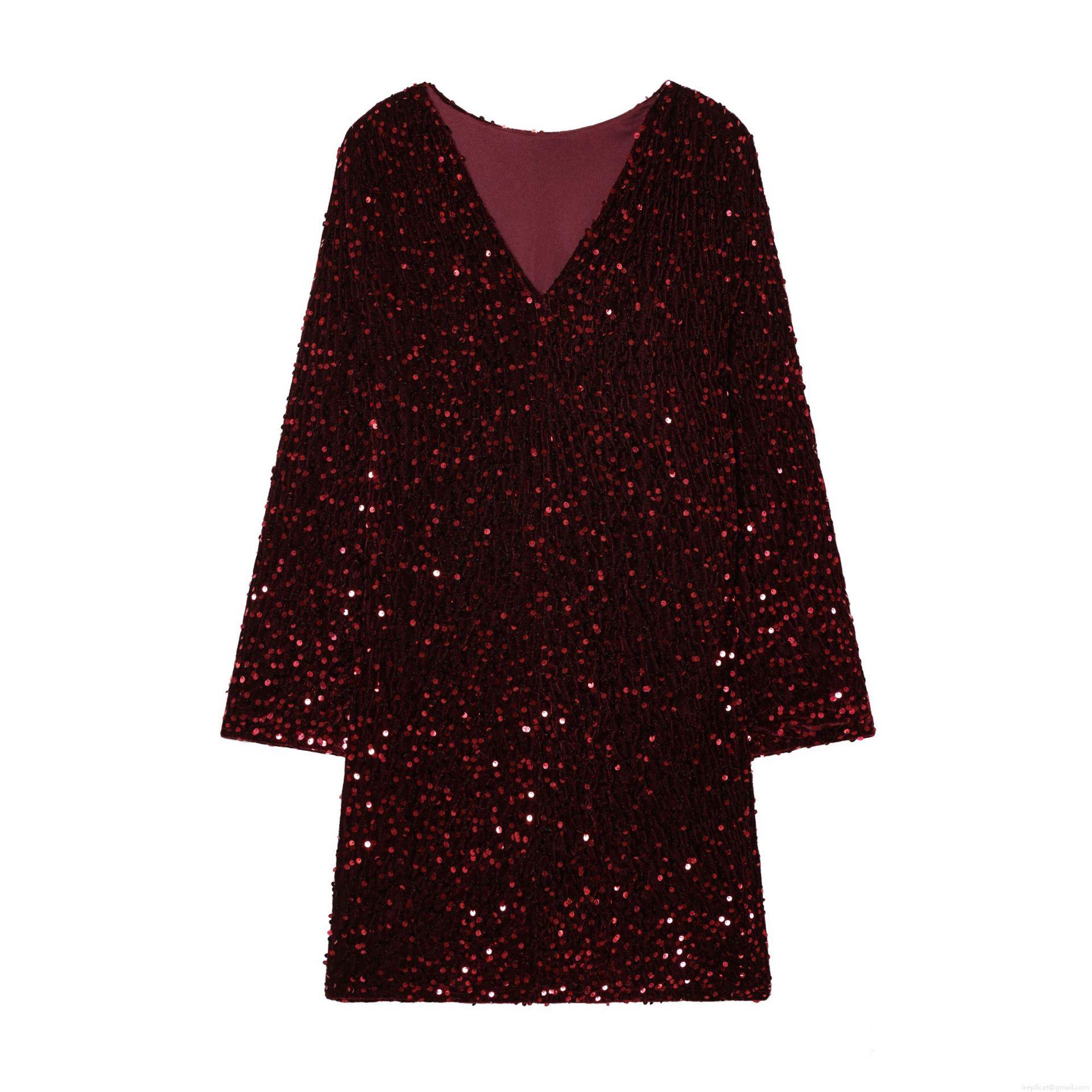 Women's Sexy Deep V Neck Long Sleeve Sequined Mini Dress Elegant...