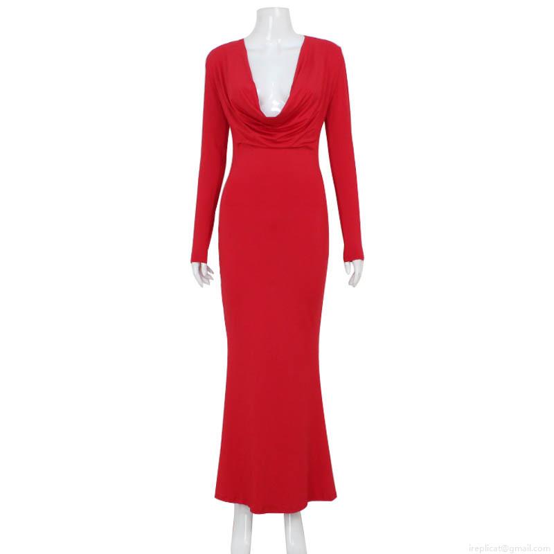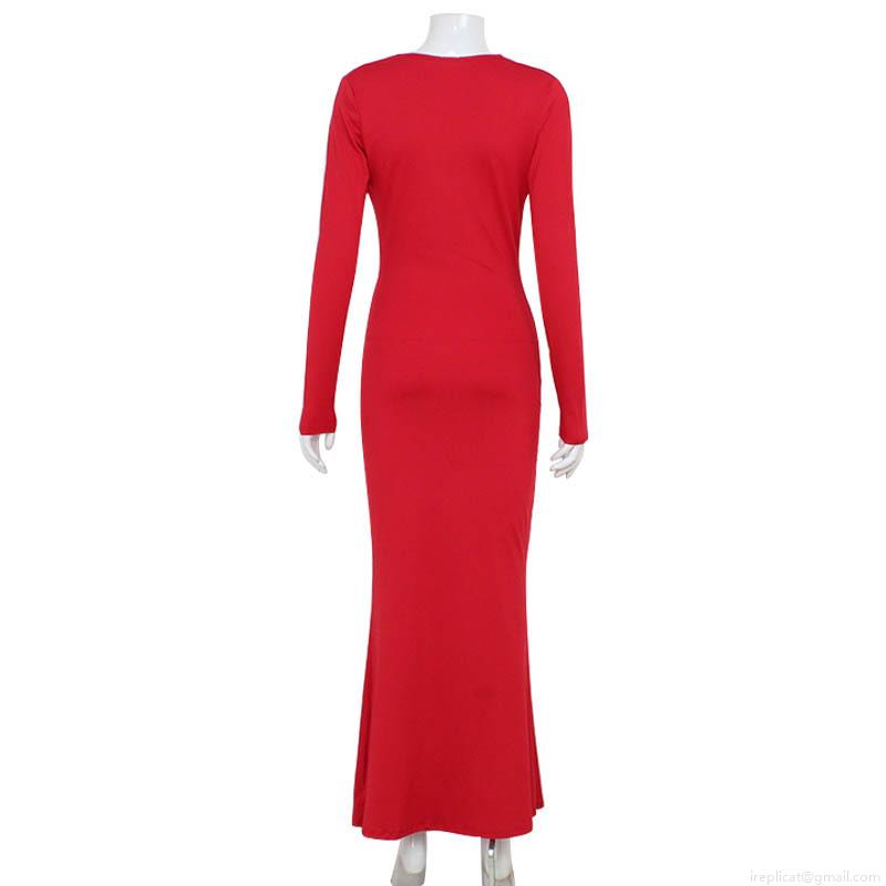 Women's Sexy Deep V Neck Maxi Dress Long Sleeve Bodycon Evening Party Gown Elegant Solid Color Floor Length Spandex Clubwear Dress