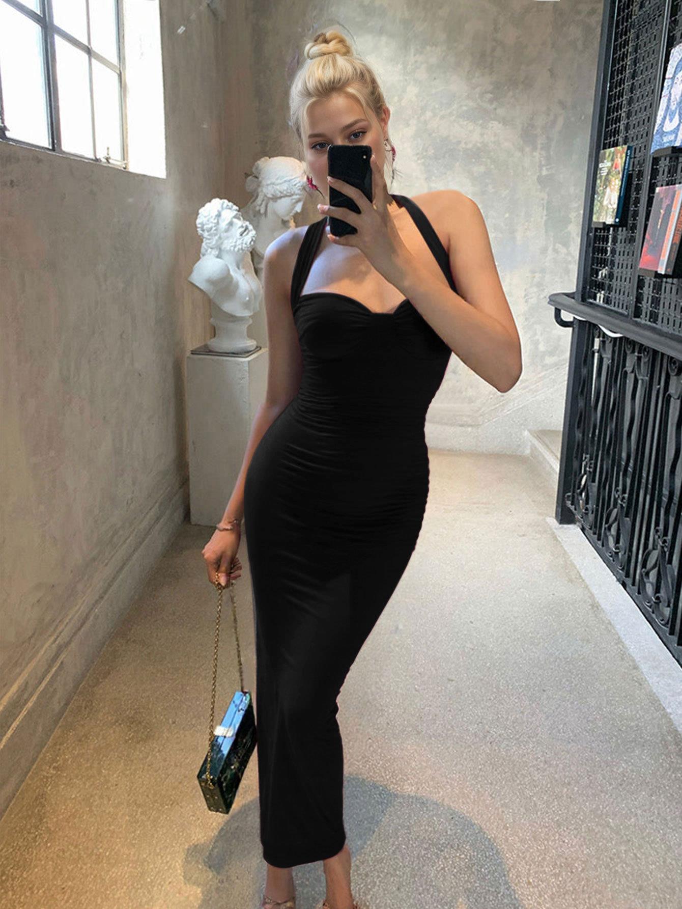 Solid Color, Bow, Pleats, Neckband, Backless, Hip Wrap
